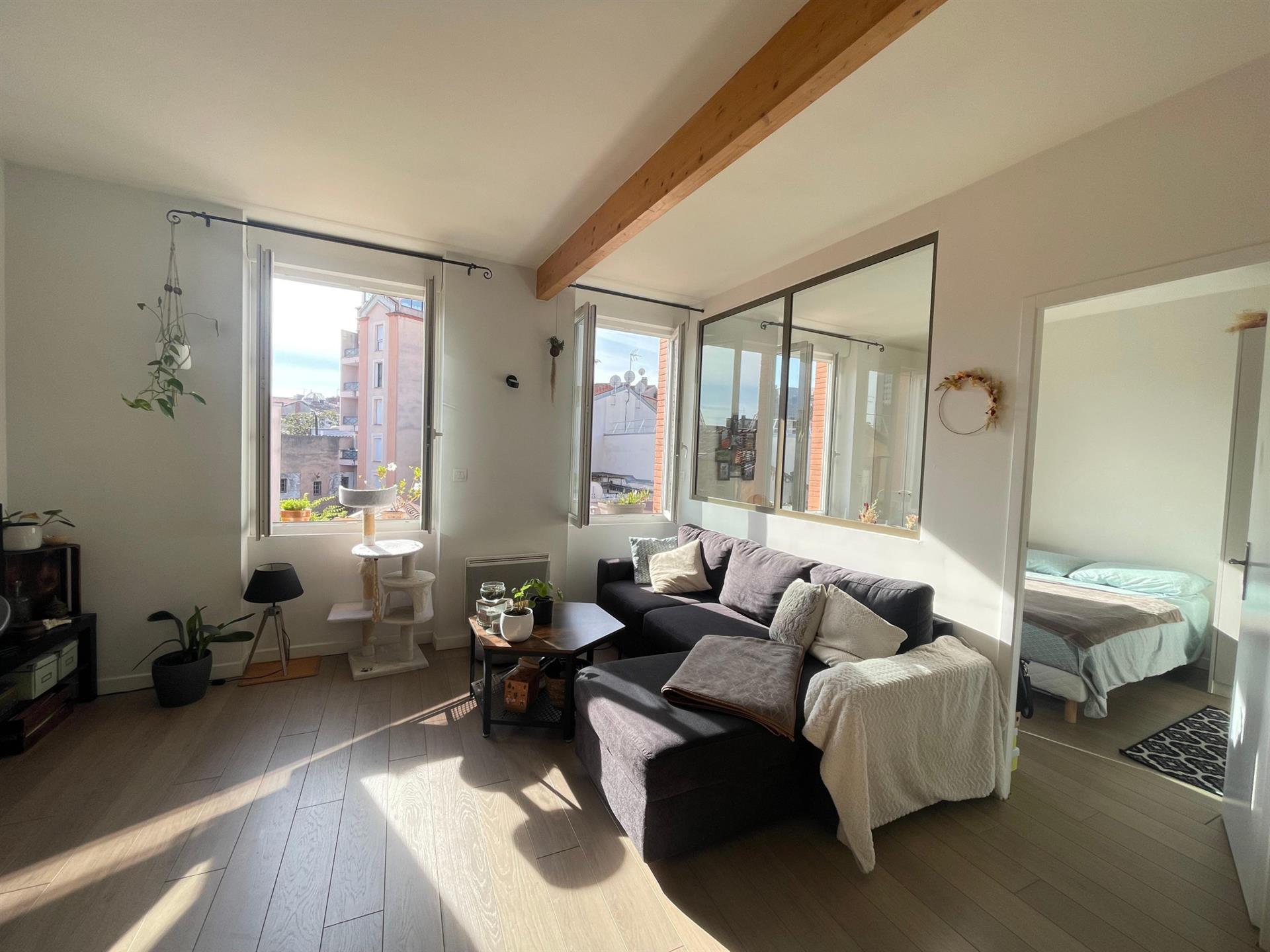Toulouse - Jean-Jaures - Dans un immeuble calme et bien entretenu, venez découvrir ce lumineux et calme T2 en très bon état général. Il se compose d'une pièce de vie principale avec cuisine ouverte, d'une chambre séparée et d'une salle d'eau. Le tout offrant une belle vue dégagée sur les toits de toulouse et au calme. A visiter sans tarder.
