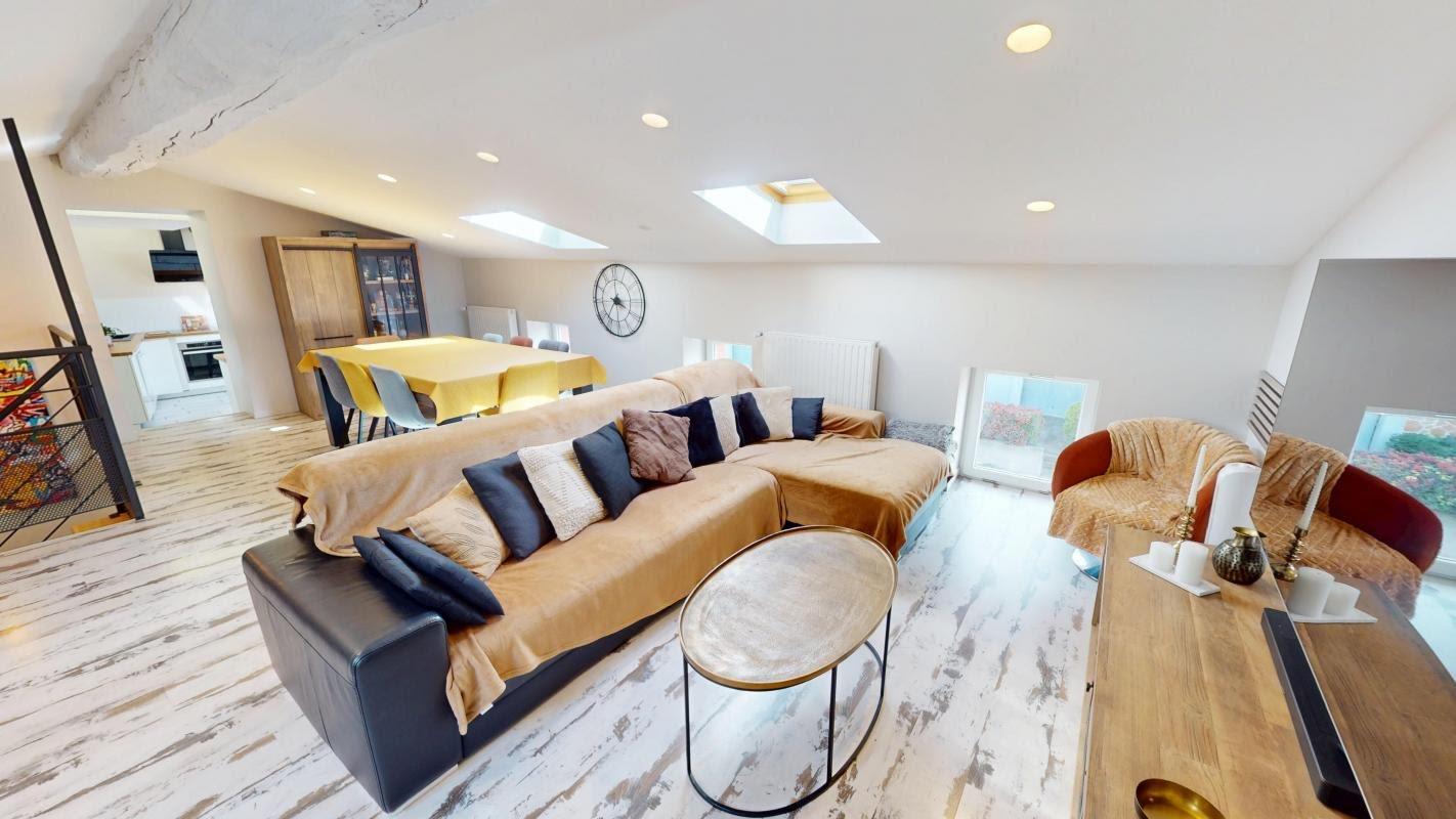 Saint-Jean-Bonnefonds, un écrin de verdure en centre ville, duplex en rez-de-jardin donnant sur une parcelle de 1 379 m² avec piscine, appartement de 103 m² entièrement rénové avec goût en 2017. Au premier étage, avec entrée à l'arrière du bâtiment, 1 suite parentale avec salle d'eau, 1 suite parentale avec salle d'eau et de bains, 1 petite chambre et 1 toilette séparé. Au deuxième étage, 1 grand séjour de 37 m², 1 cuisine accédant sur le jardin et 1 toilette séparé. Garage avec atelier, caves, une dépendance de 12 m² aménagée et une cabane de jardin. Possibilité de louer un deuxième garage. Aucuns travaux à prévoir. Appartement économe en énergie : Dpe C. Visite virtuelle sur le site Orpi de l'agence Spj Immobilier. Pierrick Benoit - Agent commercial - N°845 346 592 immatriculé au Rcs de Saint Etienne Référence agence : 0000