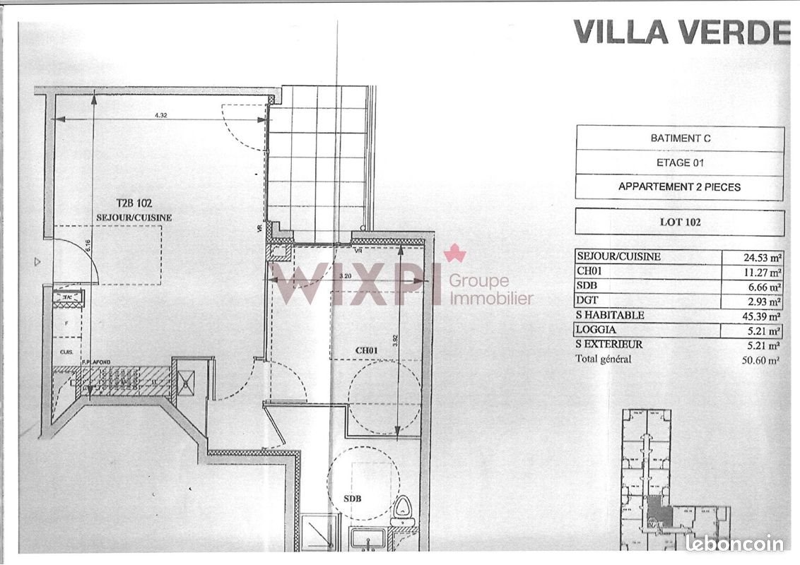 Feyzin - Route de Vienne, T2 de 45,39m² dans une résidence de 2016. Vous disposerez d'une pièce de vie de 24,53m² avec sa cuisine équipée et meublée donnant accès au balcon de 5,21m², d'une chambre de 11,27m² et d'une salle d'eau avec Wc. De plus, un garage fermé en sous-sol. Les charges comprennent l'entretien de l'immeuble et de la chaudière individuelle. Transports en commun à moins de 10mins à pieds : bus 39, 60 et 213. La gare de Feyzin est à 8mins à pieds. Disponible rapidement. Contact WixPi : / .