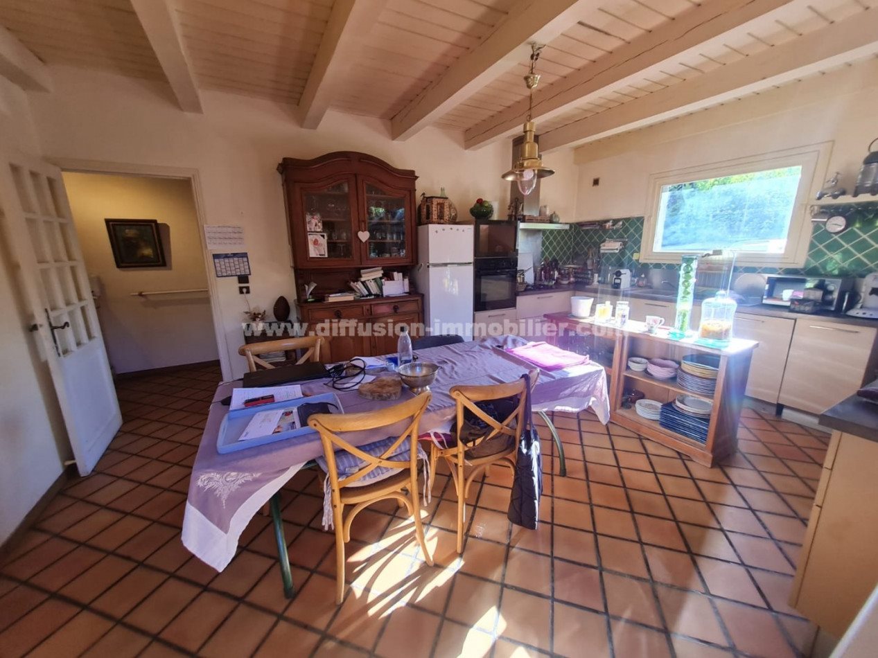 Saint Pons, sur 1200 m² de terrain, maison de type 4 d'environ 140 m² aménagée de la maniére suivante, - au rez de chaussée: une cuisine, un séjour, un wc, une salle d'eau, une buanderie, une garage, - à l'étage, trois chambres, une salle d'eau avec wc et une mezzanine. Une terrasse dont l'accés peut s'effectuer depuis la cuisine et le séjour. La cuisine dispose d'un poéle à bois et le séjour d"un insert. Le jardin est arboré. Exposition est, sud et ouest.