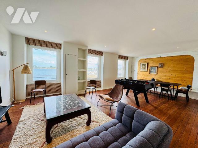 Port de L'aber Wrac'h. Rare sur le marché. Au premier étage d'un petit immeuble de charme. De très beaux volumes pour cet appartement de standing, entièrement refait à neuf, avec des matériaux de qualité. Une pièce de vie de plus de 56m2 avec une vue direct ...