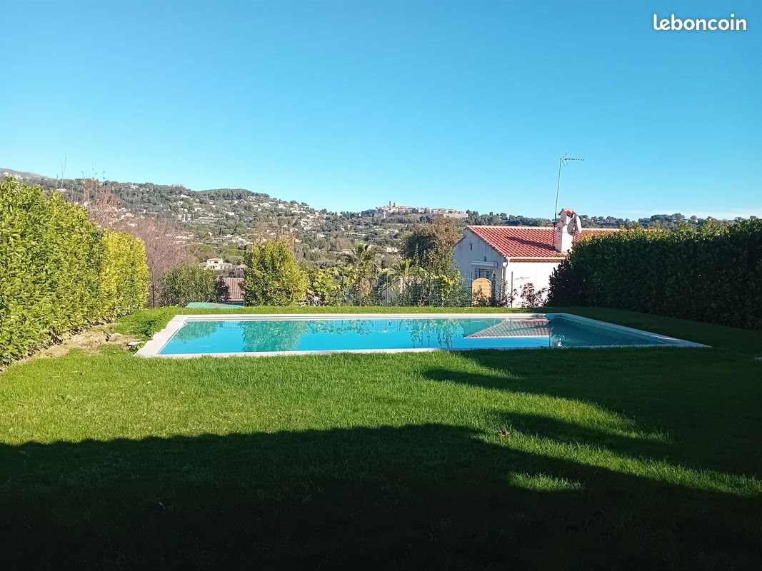 Situé dans une impasse. Très bel appartement en rez de villa de 70 m² habitable, comprenant, un séjour, cuisine, 1 chambre, salle de bains, terrasse, un jardin de 450 m² , une piscine.