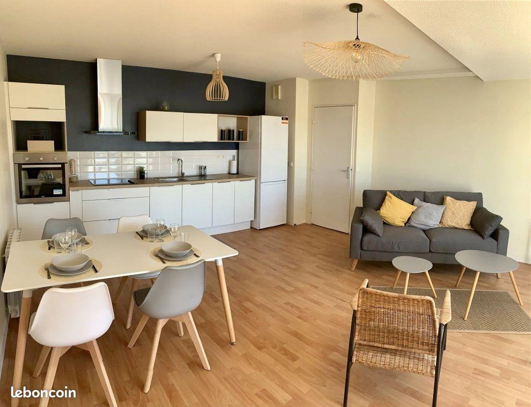 A louer, bel appartement meublé de 49 m² avec terrasse aux portes de Vannes. Ce Type 2 se compose d'une entrée avec placard, d'une pièce de vie lumineuse avec cuisine ouverte (neuve)(aménagée et équipée) et d'un salon. Vous y trouverez également une chambre avec placard, une salle de bain et des Wc séparés. Les plus : 2 places de parking en extérieur, proche des lignes de bus, exposition Sud. Loyer : 690.00 € + 35.00 € de charges de copropriété. Honoraires à la charge du locataire :496.80 € dont 142.95 € d'état des lieux. Caution : 1380.00 € (deux mois de loyer hors charges) Les informations sur les risques auxquels ce bien est exposé sont disponibles sur le site Géorisques :
