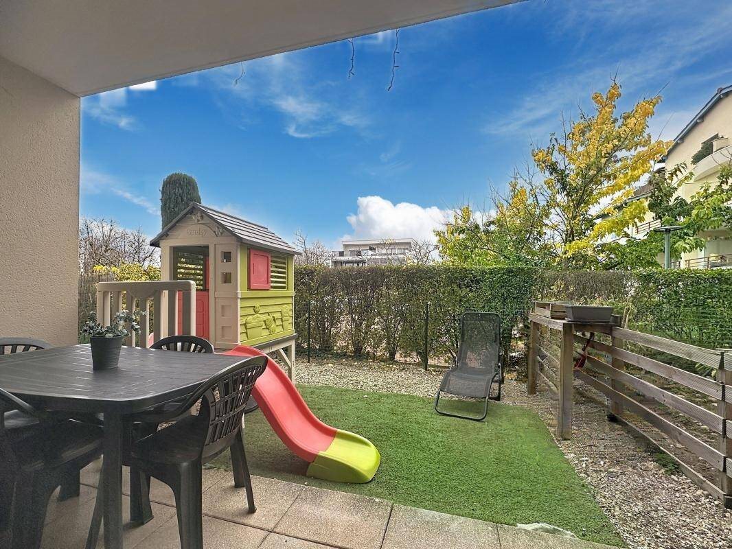 Appartement À Vendre. Mornant centre village, résidence le Pré Vert : vente d'un appartement T3 en rez de jardin, vendu loué. D'une superficie de 74,1m², il comprend entrée avec placard, cellier, séjour avec cuisine aménagée le tout ouvrant sur la terrasse et le jardin, 2 chambres, salle de bains, Wc. Garage fermé en sous-sol et place de parking privative. Loyer actuel 860 euros Cc.