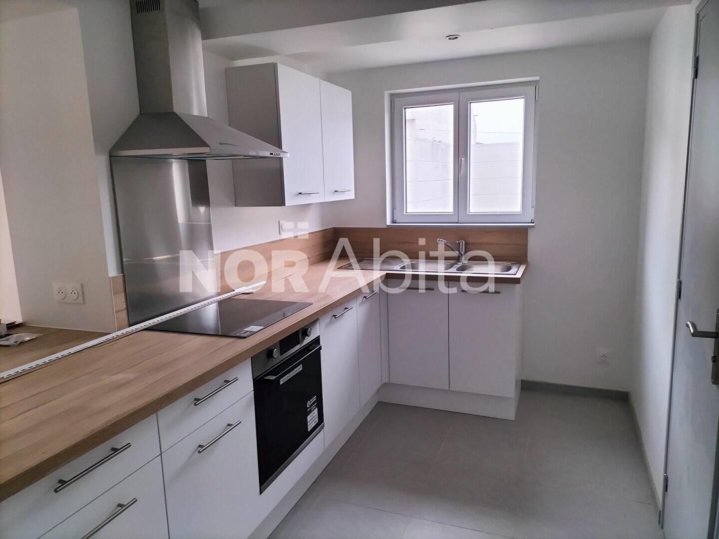 Appartement T3 neuf dans ancien corps de ferme. Pièce de vie avec cuisine équipée, salle d'eau et wc séparé . A l'étage : 2 chambres. Pour compléter ce bien une place de parking. Les charges comprennent les communs. Et la taxe des ordures ménagères Libre début déce...