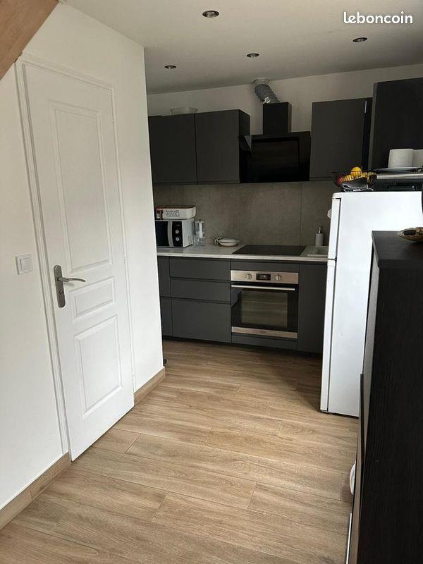 Situé en plein centre-ville, face à l’église, ce bel appartement en duplex offre un cadre agréable et pratique, à proximité immédiate des commerces et des commodités. Au rez-de-chaussée, une grande pièce à vivre avec cuisine aménagée et équipée, ainsi qu’un Wc séparé. À l’étage, deux chambres et une salle de douche avec Wc. Appartement entièrement refait à neuf il y a 2 ans en excellent état. Honoraires 420€