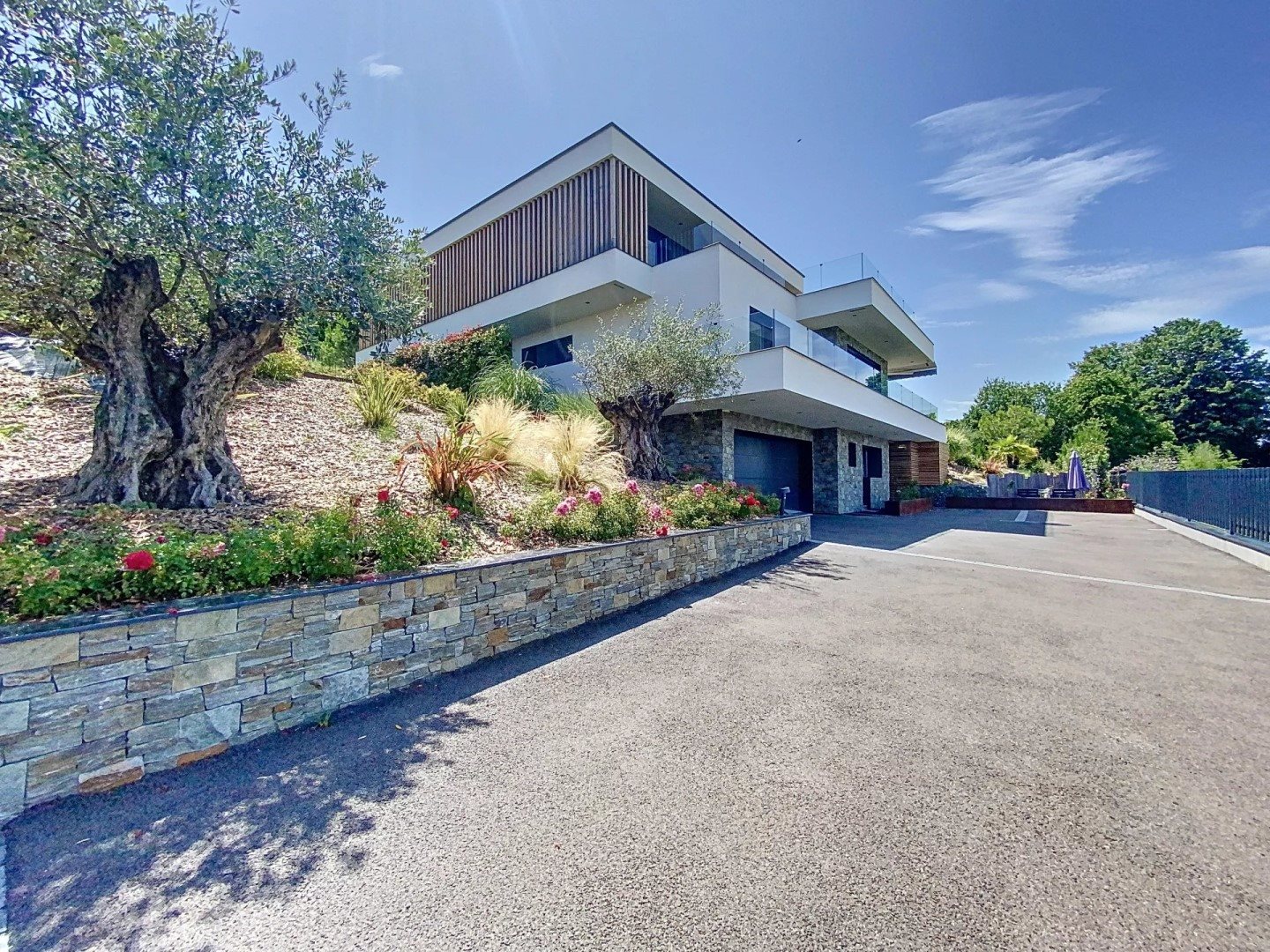 En lisière des Mateirons. Villa contemporaine de 2020 située dans un secteur calme et recherché de Neuvecelle elle offre une superficie habitable de 270 m².La maison dispose d'un salon orienté face au lac avec une cuisine ouverte. Quatre chambres avec salles d'eau attenantes, un studio indépendant, une grande pièce pouvant faire office de salle de cinéma ou de salle de sport, un sauna, une cave et un garage finalisent cette villa.Les prestations comprennent une domotique intégrée, de grandes baies vitrées avec brises soleil orientables, un chauffage au sol relié à une pompe à chaleur. Le diagnostique de performance énergétique note la maison en A.La maison est édifiée sur un terrain paysager de 1047m² avec plusieurs stationnements extérieurs.