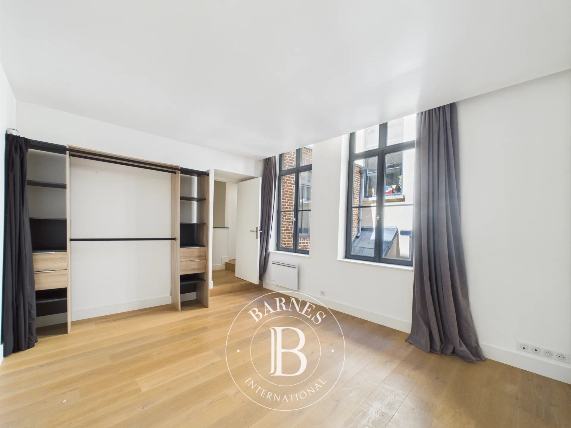 Lille Centre, au coeur de la ville, face à l'église St Maurice, à deux pas de la gare Tgv, au premier étage d'un immeuble prestigieux, charmant duplex offrant un agencement optimal. Une belle façade classée vous accueille dans Dès l'entrée, vous serez séduit par le spacieux espace de vie double avec cuisine américaine dinatoire. A ce niveau également, vous disposez de toilettes.A l'étage, un dégagement distribue deux chambres et une grande salle de bains comprenant une machine à laver le linge. Des toilettes indépendantes complètent ce niveau.Les charges de copropriété sont faibles pour ce bien rénové doté d'un cachet indéniable et d'une belle hauteur sous plafond, lui conférant un caractère unique. Son emplacement privilégié, à proximité des commerces et à 2 minutes à pied de la gare, le plan avec son aménagement haut de gamme, font de cet appartement le pied à terre idéal.Il offre aussi une solution clef en main pour des investisseurs, un jeune couple, des parents voulant loger deux enfants, ou aussi une colocation.Bien soumis au régime de la copropriété (4 lots)Montant moyen de la quote-part de charges courantes 2400€/anPas de procédure en cours