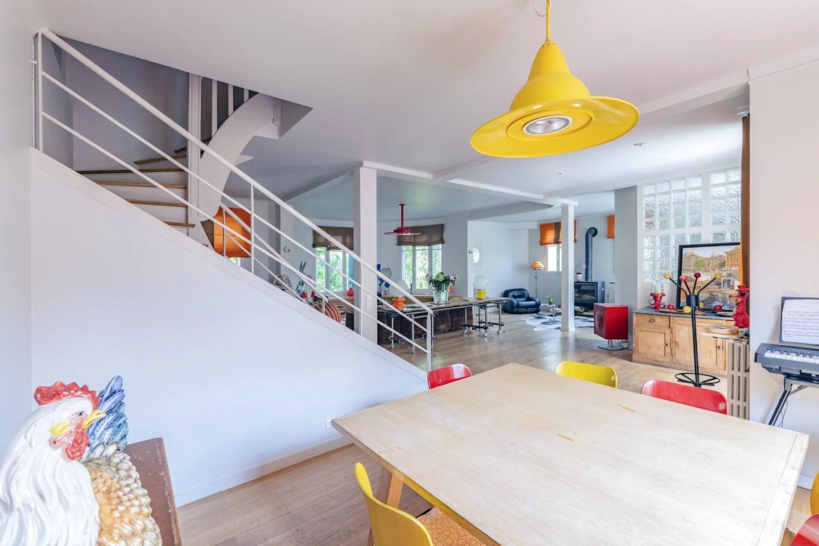 Un Charme Fou Pour Cette Grande Maison Moderne Et Rare Dans Ses Volumes Et CONCEPTION. Située dans un secteur très prisé du coteau Rive Droite, originalité et modernité pour cette grande maison des années 1930 au calme d'une impasse, proche du bois de Fausses Reposes, à 7 minutes à pied de la gare Rd vers La Defense/ St Lazare, commodités et écoles à proximité (College / Maternelle Et Ecole St Thomas tout comme les Ecoles Internationales Sevres Et St CLOUD. Répartie sur trois niveaux d'environ 100 m² chacun, la maison totalise près de 310 m² Utiles, au cœur d'un jardin paysager avec un Terrain De 500M² en double accès, préservé des regards extérieurs. Majestueux triple séjour traversant d'environ 80 m², baigné de lumière grâce à ses baies vitrées comprend un salon en rotonde, une belle salle à manger, et une cuisine semi-ouverte au design italien. Un poêle à bois et une cheminée renforcent l'ambiance. U parquet en chêne massif et une belle hauteur sous plafond (3,10 m) ajoutent charme et modernité. À l'étage, 4 grandes chambres dont une suite parentale avec salle de bains (baignoire + douche) et Wc indépendants. Les autres chambres bénéficient d'une salle de bains commune avec toilettes séparées. L'une d'elles dispose d'une mezzanine. La 5ème chambre avec salle d'eau privative s'ouvre directement sur le jardin. On retrouve également en rez de jardin une buanderie, une cave à vin, ainsi qu'un garage fermé. Le Jardin qui occupe une belle place par sa grande surface est caché des regards et noyé dans la végétation. CHAUFFAGE Gaz Taxe Fonciere 1616€ Dpe D Intimite Et Volumes Pour Cette Belle MAISON Honoraires 4% inclus dans le prix affiché POUR Toute Information Merci De Aurore Pannetier Appartements Et Maisons Chaville VIROFLAY Géorisques Les informations sur les risques auxquels ce bien est exposé sont disponibles sur le site Géorisques