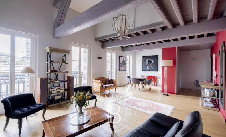 A deux pas de la Place du Palais, joli duplex de 100 m² carrez en parfait état situé au 3ème et dernier étage d'une petite copropriété. Il comprend au 1er niveau une entrée qui distribue un vaste séjour avec un plafond cathédrale, une cuisine dînatoire et u...