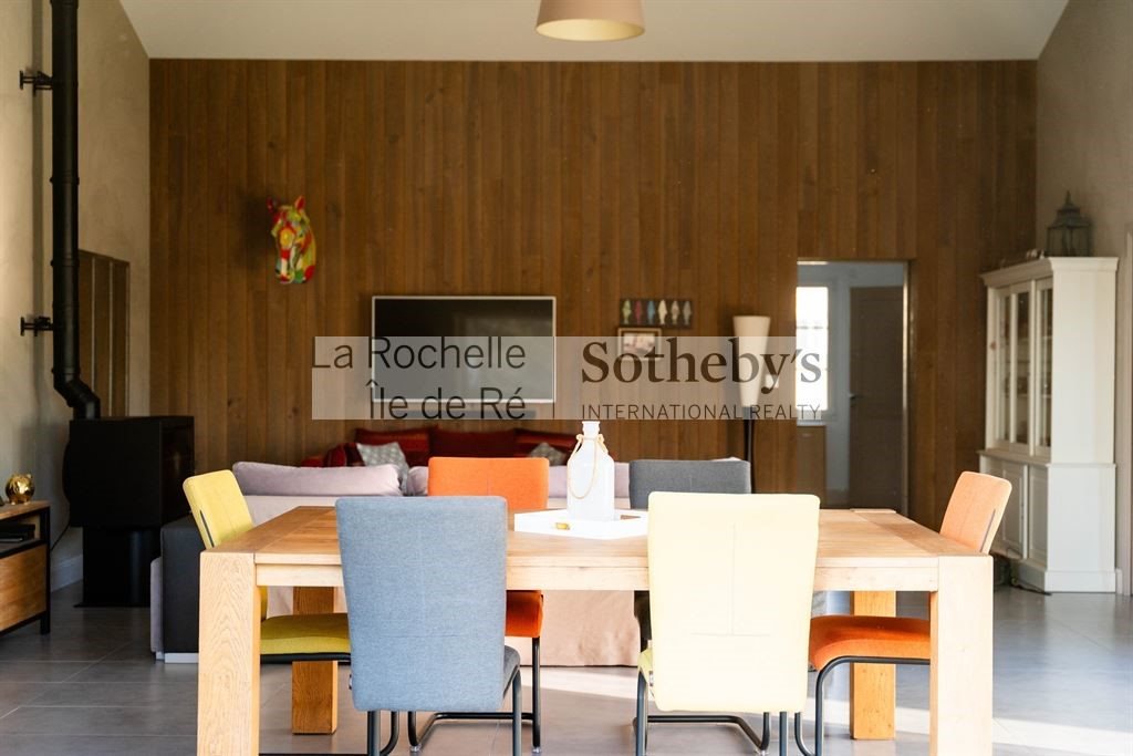 La Rochelle Ile de Ré Sotheby's International Realty vous propose A Saint-Rogatien – à 10 minutes de La Rochelle, une maison familiale, d'environ 236 m² habitables, dont l'architecture a été pensée en terme de volume et de luminosité. Implantée plein sud, elle s'ouvre généreusement sur un jardin paysagé avec piscine, véritable prolongement des espaces de vie. Le rez-de-chaussée privilégie la convivialité : une cuisine dinatoire d'environ 30 m², conçue comme une pièce à vivre à part entière, et un vaste salon–salle à manger de 48 m². Ces deux pièces bénéficient de poêles à granulés, avec des baies à galandage confondant intérieur et extérieur. Une chambre avec salle d'eau en rez-de-chaussée permet aisément une vie de plain-pied. Un bureau et de nombreux rangements complètent ce niveau. À l'étage, le palier dessert l'espace nuit qui accueille trois chambres, une salle de bains et une salle d'eau. La distribution est parfaitement adaptée à une vie de famille. Les annexes structurent l'ensemble : garage de 27 m², garage à vélos, carport et cave répondant aux usages contemporains. Une propriété pensée pour une vie familiale, dans un environnement calme et résidentiel, à seulement 14 minutes de la plage de Châtelaillon-Plage. Annonce rédigée par Daphnée Prély Ei- Agent Commercial- Rsac La Rochelle n° 492 521 117.
