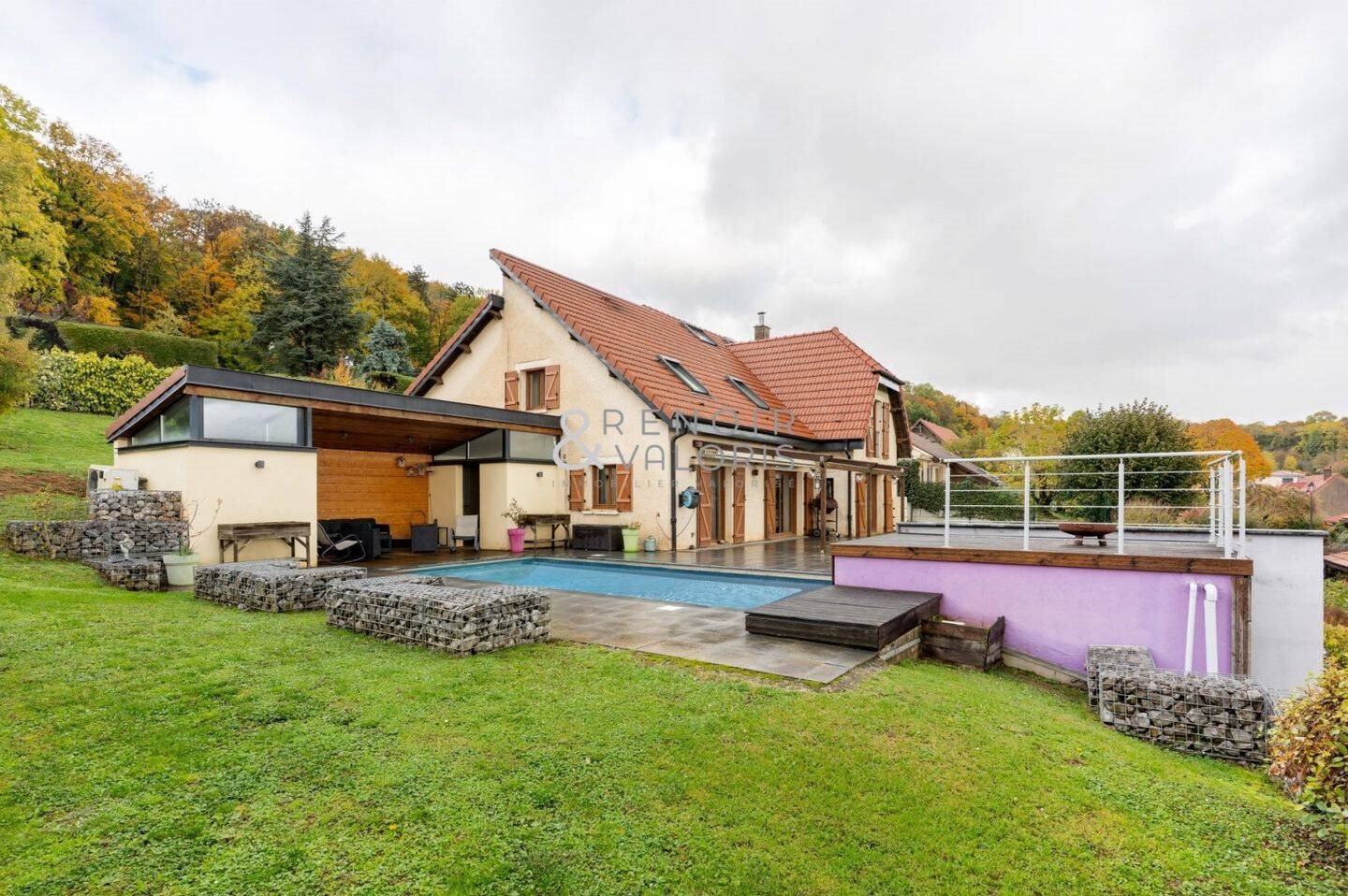 En exclusivité, dans le secteur le plus prestigieux et recherché de Dommartemont, découvrez cette belle maison familiale d'une surface habitable de 200 m² et 320 m² au sol, offrant une vue exceptionnelle sur Nancy et un cadre de vie privilégié. Dès l'entrée, vous serez séduits par ses volumes généreux et sa luminosité. La pièce de vie, spacieuse et conviviale, s'articule autour d'un grand séjour ouvert sur une cuisine équipée et sur les différents espaces extérieurs. Vous profiterez également d'une salle de cinéma, d'une buanderie et d'un Wc indépendant. L'espace nuit se compose de quatre chambres, dont une suite parentale avec dressing et une autre disposant d'une mezzanine. Deux salles de bains, un Wc indépendant qui complètent cet ensemble fonctionnel. À l'extérieur, vous profiterez d'un agréable jardin paysager d'environ 2000 m², agrémenté d'une terrasse et d'une piscine avec son pool house, offrant une vue panoramique sur Nancy et ses environs. Cet espace invite à la détente et aux moments de convivialité en toute intimité. La maison possède un garage ainsi que deux places de parking en extérieur. En sous-sol, la maison bénéficie d'une cave, idéale pour le rangement. Alliant confort, élégance et situation privilégiée, cette maison représente une belle opportunité sur le secteur prisé de Dommartemont. Honoraires à la charge du vendeur. Classe énergie C, Classe climat A Montant moyen estimé des dépenses annuelles d'énergie pour un usage standard, établi à partir des prix de l'énergie de l'année 2021 : entre 1980.00 et 2750.00 . Les informations sur les risques auxquels ce bien est exposé sont disponibles sur le site Géorisques : . Votre conseiller Renoir & Valoris Ravinelle : Vincent Magdziarek Agent commercial (Entreprise individuelle)