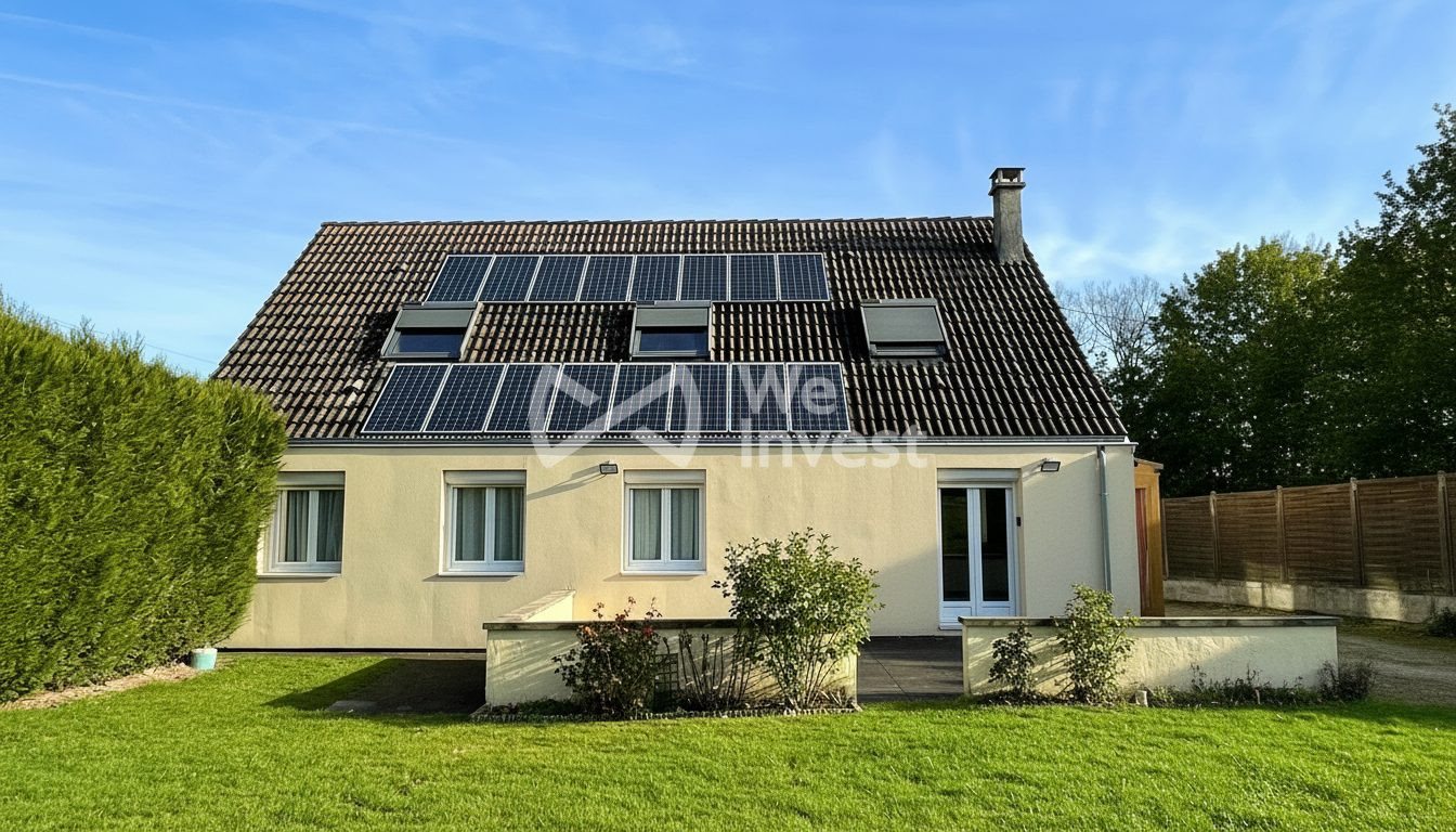 En Exclusivite sur le secteur de Dagny à moins de 15 minutes de Coulommiers, venez visiter cette jolie maison parfaitement entretenue où vous n'aurez qu'à poser vos valises. Celle ci se compose au Rdc d'une véranda servant d'entrée, d'un séjour salle à manger de 30 m2 avec son poêle à granulés, d'une cuisine aménagée (pouvant être ouverte sur la pièce principale si vous le souhaitez), de 3 chambres, d'une grande buanderie avec placards sur mesure, d'une salle de bains et d'un Wc séparé. À l'étage vous disposerez d'un grand dégagement de 17 m2 pouvant servir de salle de jeux, d'une chambre avec son dressing, et de 2 autres petites chambres. Côté extérieur vous profiterez d'un beau terrain de 1000m2 entièrement clos avec sa terrasse plein ouest. Un garage et son atelier compose également le lot en fond de jardin. La maison dispose d'une installation de panneaux photovoltaïques avec un contrat de revente d'électricité ( 1500 euros annuel ), isolation par l'extérieur, fenêtres double vitrage en Pvc et volets roulants électriques, chauffage électrique et poêle à granulés très performant, fibre optique installée. L'assainissement est en fausse septique Honoraires à la charge du vendeur. Classe énergie D, Classe climat B Montant estimé des dépenses annuelles d'énergie pour un usage standard : entre 2390.00 et 3300.00 sur les années 2021, 2022 et 2023 (abonnements compris). Les informations sur les risques auxquels ce bien est exposé sont disponibles sur le site Géorisques : . Votre conseiller We Invest France : Nicolas Laclau Agent commercial (Entreprise individuelle) Rsac 839 702 511 MEAUX. Les informations sur les risques auxquels ce bien est exposé sont disponibles sur le site Géorisques :