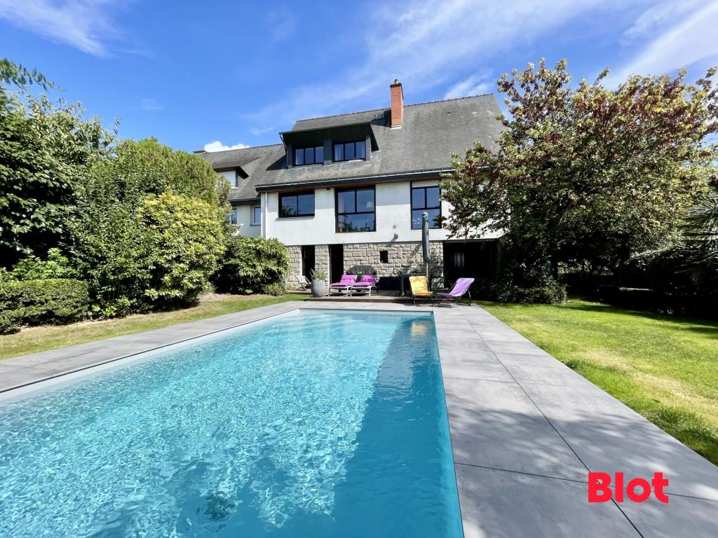 Blot Immobilier - Lorient / SAINT-BRIEUC Venez découvrir cette somptueuse maison de type 8 qui saura vous séduire par ses volumes généreux et ses prestations de qualités. Elle se compose au rez-de-chaussée, d'une grande entrée menant à une pièce hybride qui pourra être utilisée selon vos besoins du moment : en chambre d'amis, bureau ou en espace fitness avec accès et vue sur la terrasse ainsi que le jardin. Elle dispose également d'une buanderie, d'une cave et d'un grand garage avec porte électrique. Au 1er étage, vous serez sous le charme de son vaste séjour salon de 64 m² à l'ambiance cosy avec cuisine ouverte aménagée et équipée. Très lumineuse de par ses ouvertures sur le jardin et son exposition Ouest, vous profiterez du soleil de journée et de fin de journée. Toujours sur ce 1er étage, la maison dispose d'une chambre avec rangement, d'une salle d'eau, ainsi qu'un Wc indépendant avec lave-mains. Le 2ème étage comprend une très grande chambre avec dressing, et 3 autres chambres offrant de belles superficies, toutes équipées de rangements. Une salle de bains et un 2ème Wc indépendant complètent ce niveau. Edifiée sur un terrain de 651 m² sans vis à vis avec un beau jardin paysagé, vous passerez de bons moments en famille et entre amis grâce à sa grande terrasse et sa piscine chauffée. N'attendez plus et contactez nous pour visiter ce bien de grande qualité dans un environnement agréable et de qualité. CLASSE Energie : D | Classe Climat : D Réf. 4331Mb Les informations sur les risques naturels, miniers, ou technologiques, auxquels ces biens sont exposés, sont disponibles sur le site Au prix de 679 900 euros Fai, dont 4,60% Ttc d'honoraires à la charge de l'acquéreur. Prix net vendeur : 650 000 € Ce bien vous est présenté par l'agence Blot Immobilier Kennedy-