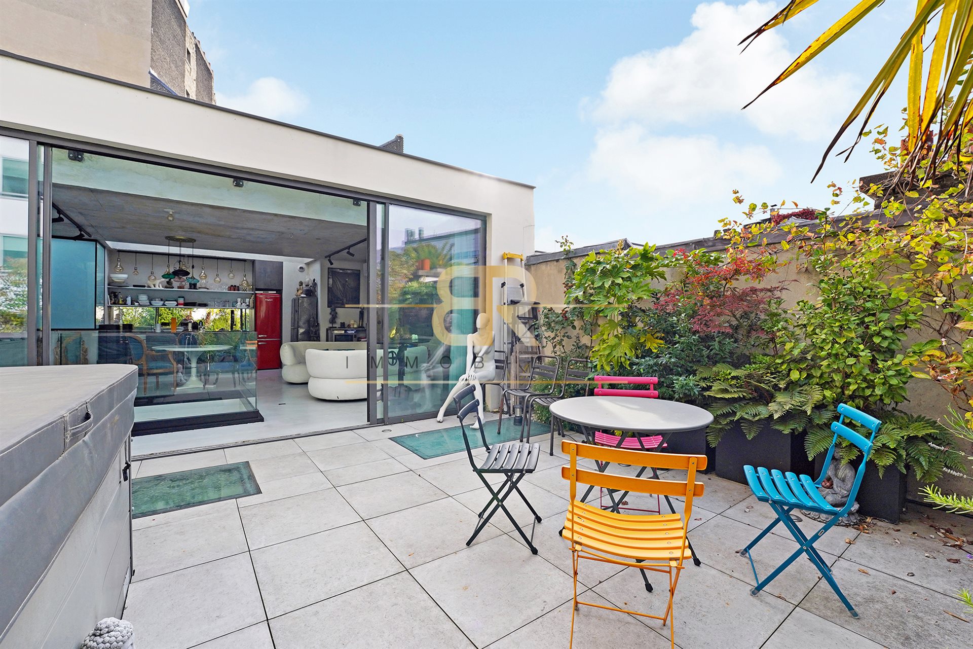 Rare – Maison D’Architecte Face Au Parc Montsouris - Paris 14e Située dans une rue privée et confidentielle du 14e arrondissement, en bordure directe du parc Montsouris, le cabinet Br Immobilier vous propose cette maison contemporaine de 188,93m2 Carrez, avec sa terrasse privative avec jaccuzi de 34,18m2 Carrez. Cette propriété a été conçue par une architecte de renom, conjuguant esthétique, confort haut de gamme et polyvalence des usages. Organisée sur trois niveaux, la maison offre 7 pièces, 3 cuisines, 3 salles d’eau, 3 toilettes et 2 places de stationnement. Elle peut aisément se diviser en trois logements indépendants (trois lots disctincs), selon les besoins. Le rez-de-chaussée, véritable loft de 80 m2 aux volumes spectaculaires (hauteur souss plafond 4m80), a été pensé comme un lieu de réception d’exception : immense baie vitrée de 18 m2, écran mural de 4x4,80 m, parquet point de Hongrie, fumoir en verrière, rideaux velours sur mesure, jeux de lumières modulables, cuisine et salle d’eau en béton, nombreux rangements dissimulés... Une mezzanine accueille un espace couchage et une salle d’eau aux finitions raffinées. Ce niveau, insonorisé par un acousticien, bénéficie d’une entrée indépendante. Au 1er étage : trois chambres dont une climatisée, deux salles d’eau, deux Wc, une cuisine ouverte sur un séjour baigné de lumière avec loggia. Possibilité d’en faire un appartement autonome de type 2 pièces. Au dernier niveau, un superbe séjour climatisé avec cuisine ouverte s’ouvre de plain-pied sur une terrasse paysagée de 34,18 m2, à l’abri des regards, avec jacuzzi 7 places. Sol en béton ciré, lumière naturelle abondante grâce aux multiples ouvertures vitrées, et ambiance chaleureuse grâce à un éclairage entièrement modulable. Un bien rare et singulier, au croisement du confort contemporain, du raffinement architectural et d’un emplacement d’exception. Le cabinet reste à votre disposition pour tout complément d'information.