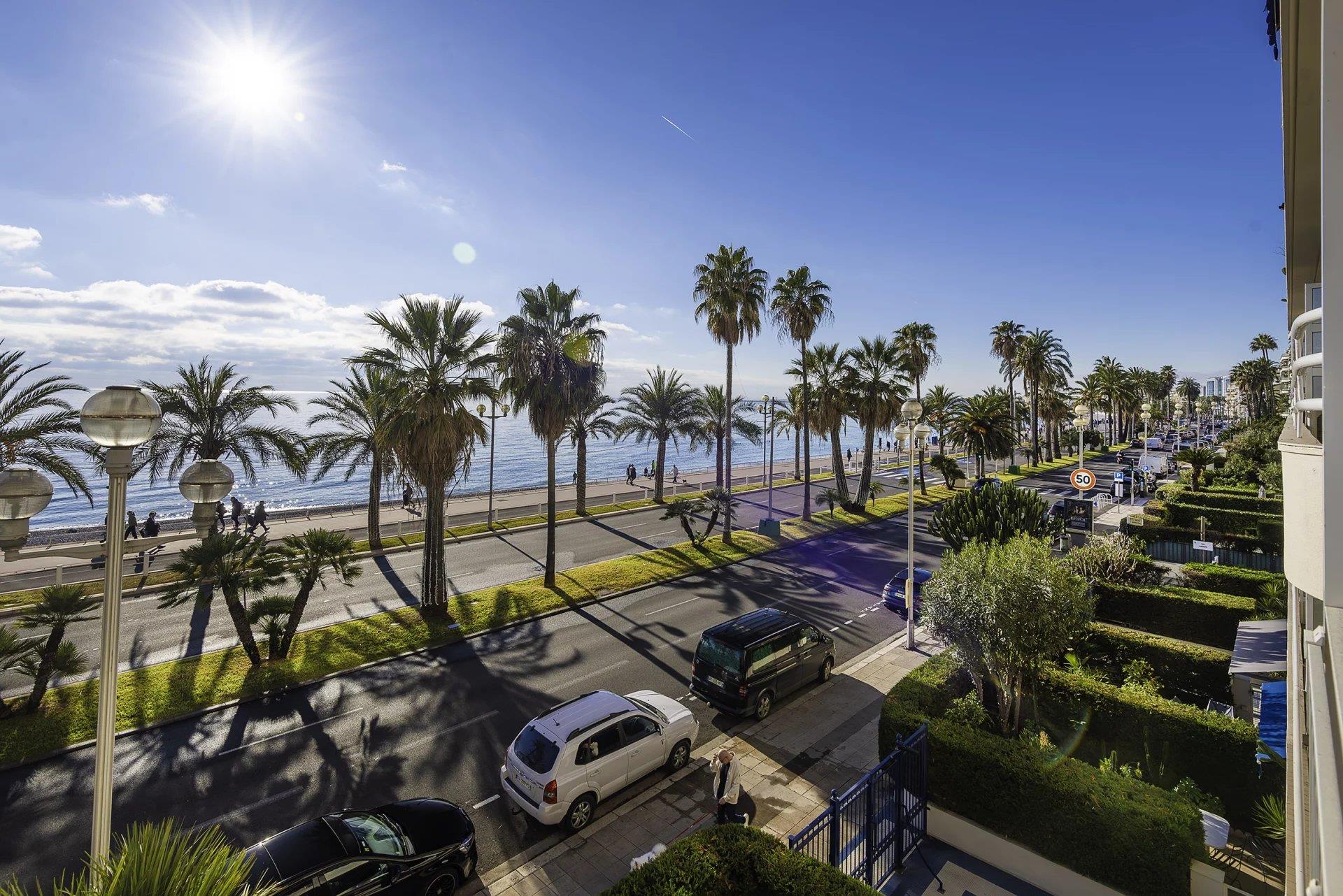 Nice Promenade Des Anglais : Exclusivité. Proche du centre, dans résidence de standing, nous vous proposons cet appartement de 3 pièces, traversant Sud/Nord, de 65 m2. Il comprend un séjour sur terrasse exposée Sud, vue panoramique mer, une cuisine séparée (possibilité de l’ouvrir sur le séjour), deux chambres à l’arrière sur balcon, une grande salle de bains et un toilettes séparés. Cave et possibilité d’acquérir un parking intérieur dans une autre résidence. Parfaite localisation pour une résidence secondaire à 2 pas du tramway et des commerces de proximité. Honoraires inclus à la charge du vendeur. Les informations sur les risques auxquels ce bien est exposé sont disponibles sur le site Géorisques: