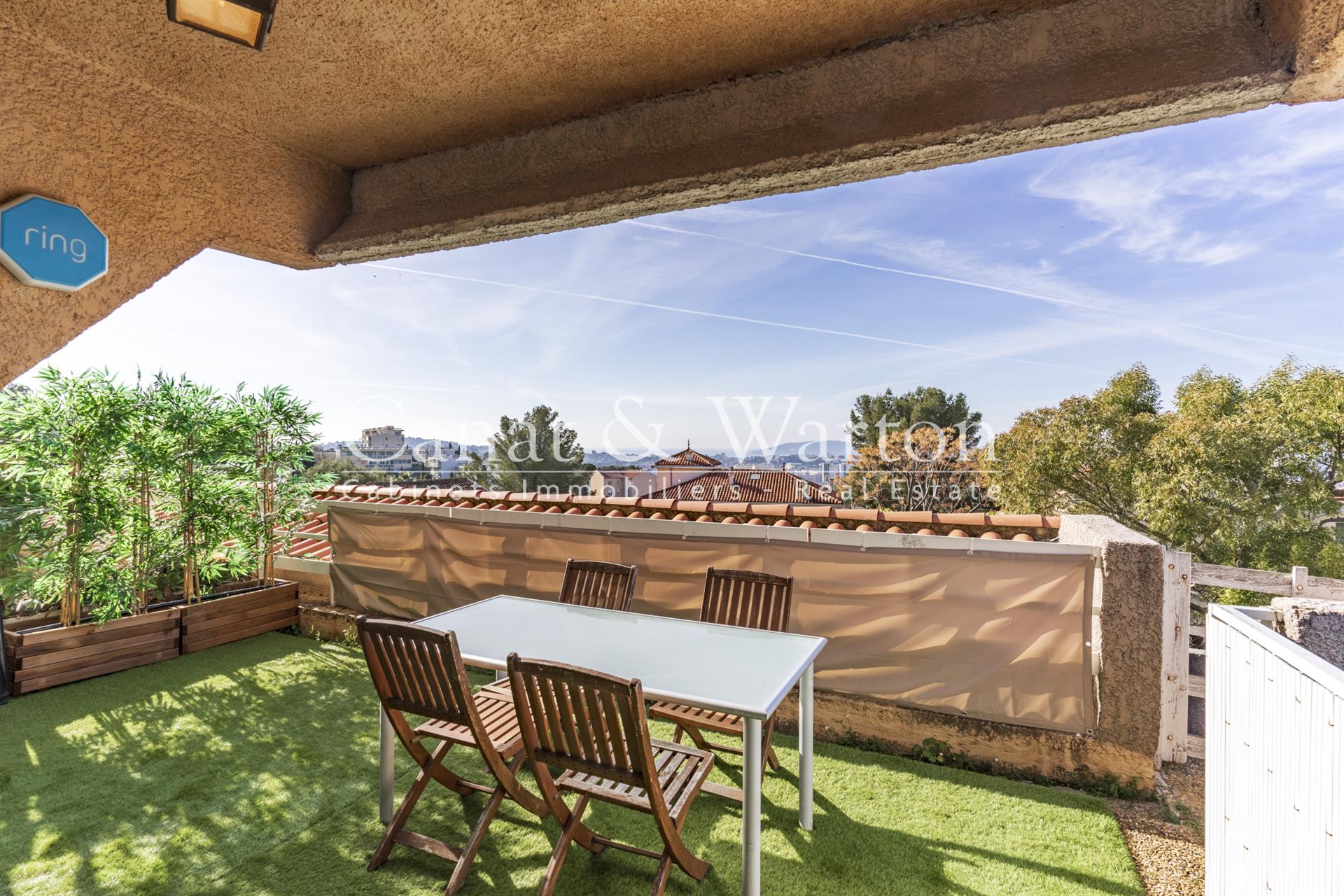 Très bel appartement entièrement rénové en 2022 situé aux 3 Quartiers Siblas. D'une surface habitable de 78 m2, il est composé d'un grand séjour d'environ 50m2 ouvert sur une terrasse avec une belle vue dégagée et une vue sur la mer. La cuisine est récente et entièrement équipée. Le coin nuit comprend 2 chambres confortables, une salle d'eau et un Wc indépendant. Au calme absolu, exposé Sud avec une vue mer, cet appartement est très bien situé, commerces et écoles à pied. Copropriété de 27 lots - Dpe B.Garage possible en sus.Les informations sur les risques auxquels ce bien est exposé sont disponibles sur le site Géorisques
