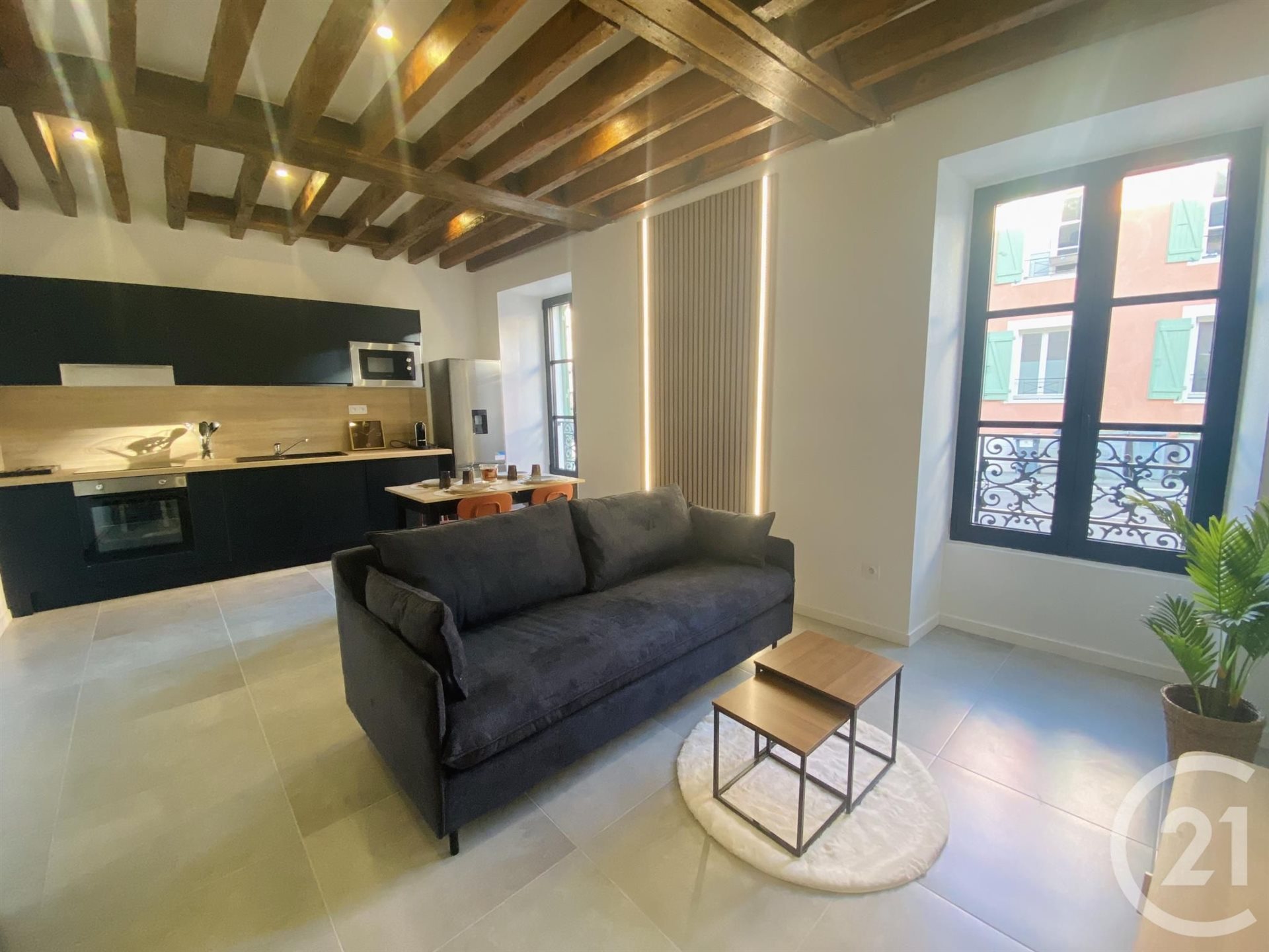 Montgeron, dans petite copropriété, à deux pas des commerces et du Rer D, charmant deux pièces meublé de 40 m², entièrement rénové avec terrasse, et comprenant : coin entrée, spacieux séjour avec poutre apparentes, cuisine ouverte équipée, chambre avec dressing, sa...