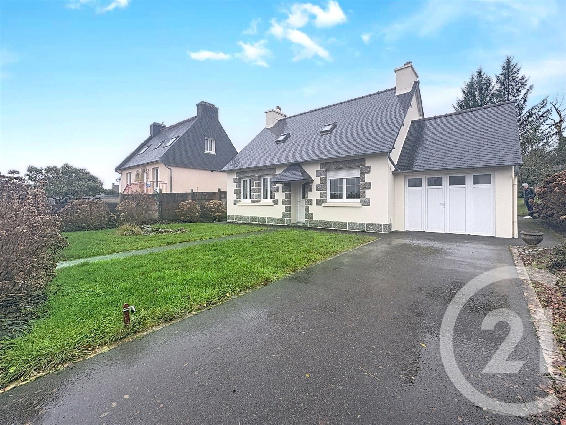 À louer : Maison à Pabu - 2 chambres (dont une en Rdc) - garage Disponible de suite! Maison à louer nue. Vous profiterez au rez-de-chaussée : - D'une entrée desservant sur un séjour avec cheminée, une cuisine indépendante aménagée, une chambre, un coin bureau, u...