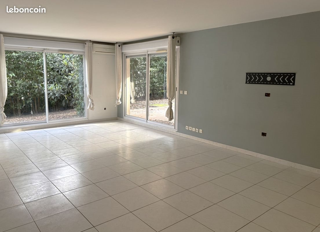 Aix en Provence, la Duranne basse, proche de toutes les commodités et des axes routiers, spacieux appartement de 106 m² en rez-de-jardin composé d'une entrée, un grand séjour lumineux donnant sur la terrasse, une cuisine ouverte entièrement équipée, 3chambres, une salle de bains, une salle d'eau, une buanderie et 2 Wc. Entrée individuelle, place parking, double box fermé, jardin arboré de 400m². Charges/An : 1873 €