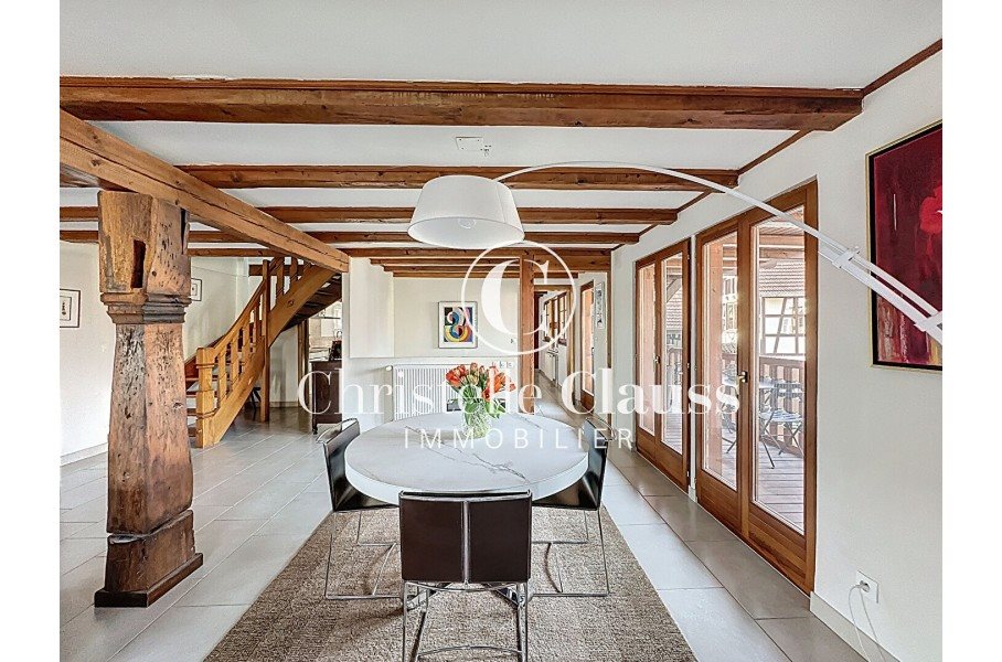 En Exclusivité chez Christelle Clauss Immobilier Magnifique maison de ville située dans une commune très prisée de Lampertheim. Son emplacement est idéal, proche de toutes les commodités, des écoles, de la crèche et des commerces accessibles à pied. Cette maison coup de coeur, entièrement rénovée, ne nécessite aucun travaux. Elle offre une surface habitable de 167 m² et séduit par ses volumes, sa luminosité et son cachet. L'entrée se fait de plain-pied et dispose de nombreux rangements. A ce niveau, vous découvrirez une très belle chambre avec sa salle de bains attenante ainsi qu'un dressing sur mesure. Cette pièce, située au rez-de-chaussée, peut parfaitement convenir à l'exercice d'une profession libérale telle que kinésithérapeute, esthéticienne ou bureau professionnel. Un Wc séparé avec lave-mains complète ce niveau, ainsi qu'une grande buanderie avec un accès direct au garage. Le garage peut accueillir une voiture et offre de nombreux espaces de rangement. A l'étage, un sublime escalier mène à une très grande et belle pièce de vie baignée de lumière grâce à sa triple exposition. Les magnifiques poutres apparentes apportent un cachet exceptionnel à cet espace. Vous y trouverez également une cuisine semi-ouverte, entièrement aménagée et équipée, neuve. La pièce de vie donne accès à un petit balcon offrant une belle vue dégagée sur le clocher de Lampertheim. Au niveau supérieur, la maison propose deux grandes chambres avec une très belle hauteur sous plafond. Une pièce supplémentaire avec cloisons amovibles permet différents aménagements selon vos besoins, en chambre, bureau ou pièce polyvalente. Une salle d'eau complète cet étage. La maison dispose de deux places de parking ainsi que d'une petite cour à l'avant, idéale pour aménager une terrasse ou un petit jardin. Bien rare sur le secteur, à visiter sans tarder. (4.94 % honoraires Ttc à la charge de l'acquéreur.)