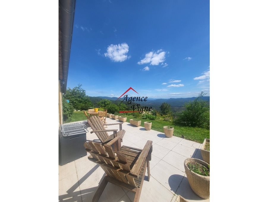 Villa 4 pièces 96 m² Villa de construction traditionnelle (10 ans) de plain-pied prête à vivre offrant une superficie habitable de 96 m² + 25m² de garage grand séjour/salon avec poêle à bois et cuisine u.s aménagée 3 chambres, salle d'eau, wc (bonne isolation) bénéficiant de panneaux photovoltaïques (consommation personnelle + revente) terrain de + d' 1 hectare 5 avec partie boisée et petite piscine hors sol situation dominante au calme avec vue imprenable à découvrir Surface : 96 m² Date de réalisation du diagnostic énergétique : Consommation énergie primaire : 101 kWh/m²/an Consommation énergie finale : Non communiqué Montant estimé des dépenses annuelles d'énergie pour un usage standard : entre 660 € et 960 € sur les années 2021, 2022 et 2023 (abonnements compris).
