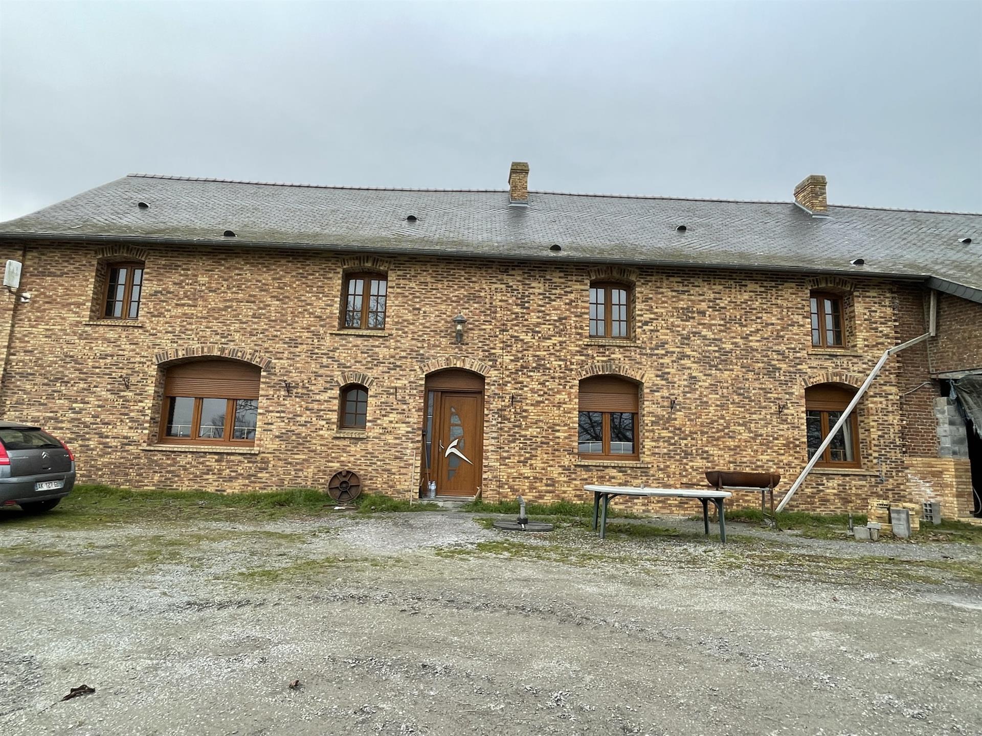 A 1h30 au sud de Lille, Watremez Immobilier vous propose cette maison individuelle offrant au rez de chaussée : hall d'entrée, cuisine équipée ouverte sur un séjour avec cheminée de +ou- 45m2, un 2èmé séjour avec cheminée de +ou- 43m2, salle de bain, wc, 3 chambres( dont à renover prévu pour une suite parentale), cellier/buanderie, chaufferie. A l'étage : 1 chambre, grenier aménageable sur la surface de la maison. Bâtiment de + ou - 380m2. Cour et jardin. Environ 5,7 hectares de pâture. Pour plus de renseignements ou visite, votre conseiller Vincent Collet au Référence : 1 9343cv Prix affiché : 430 000 € Ttc Barême des honoraires : N.C.