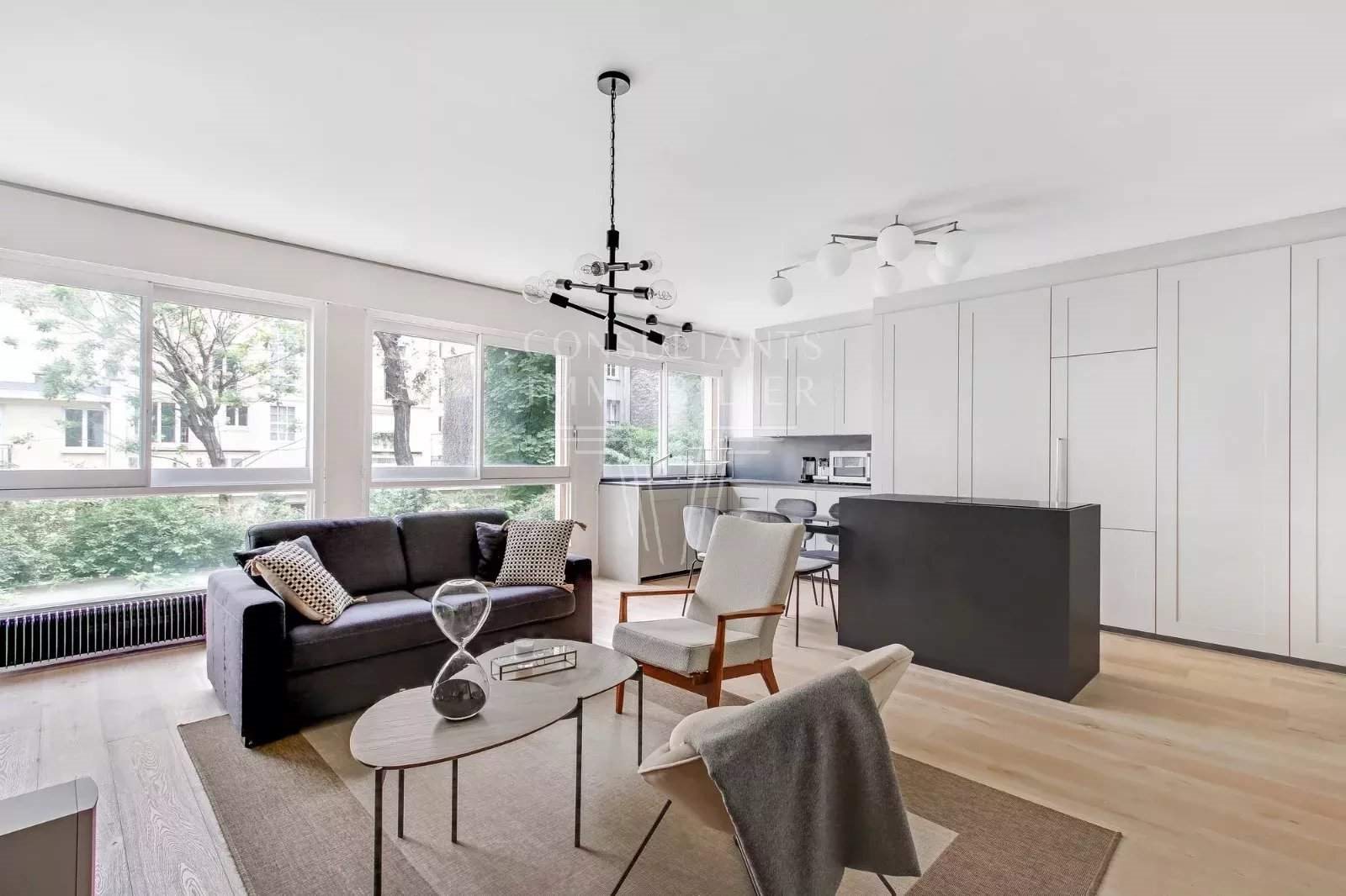 Dans un immeuble de standing au 1 er étage avec ascenseur donnant sur jardin. Appartement meublé de 2 pièces principales. Il est composé d'une entrée avec vestiaire invité, salon avec cuisine américaine équipée, chambre avec placards, salle de bains avec douche, baignoire et toilettes. Décoré d'une façon contemporaine et soignée. Très calme et ensoleillé. Libre immédiatement. Bail code civil.