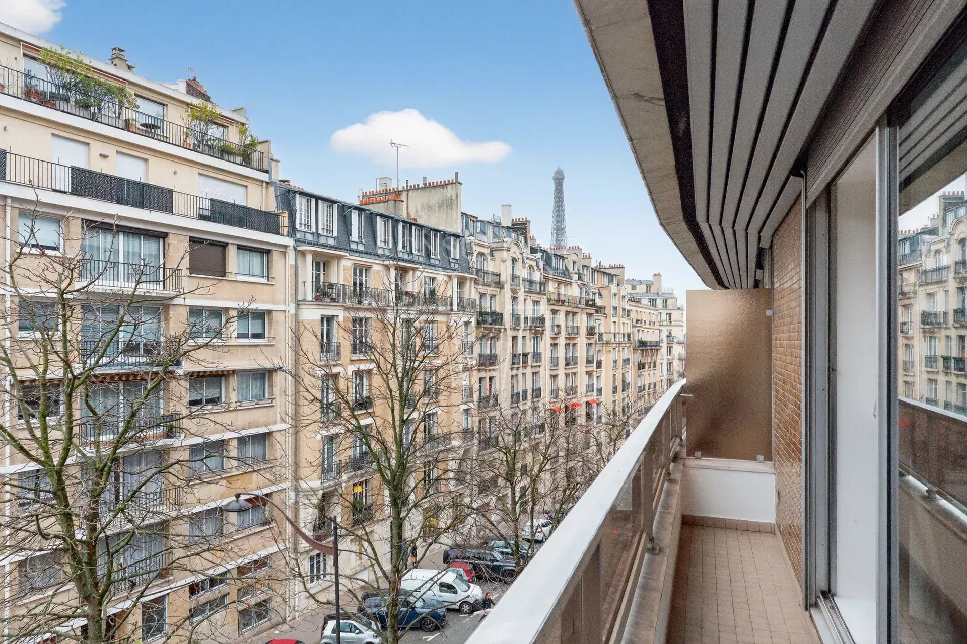Paris Xvi. Avenue De Lamballe. Grand Deux-Pièces En Étage Élevé Balcon Vue Tour EIFFEL. Au sixième étage d'une résidence de grand standing des années 80 disposant d'un gardien 7 j/7 et 24 h/24 : Appartement calme et lumineux, d'une superficie de 72,07 m² loi Carrez comprenant une entrée, un vaste séjour - cuisine équipée de 38 m² bénéficiant de baies vitrées ouvertes sur le balcon à la vue dégagée avec un bel aperçu tour Eiffel, une grande chambre avec salle de bains. L'ensemble est en très bon état, la cuisine s'intègre parfaitement dans la pièce de vie, l'espace nuit est de près de 24 m². Un accès au centre fitness avec piscine à un tarif abonnement préférentiel est proposé aux propriétaires de la résidence. Vendu avec une cave et un parking en sus du prix, ce bel appartement est situé à proximité des transports et des commerces de Passy. GROUPE Consultants Immobilier Paris