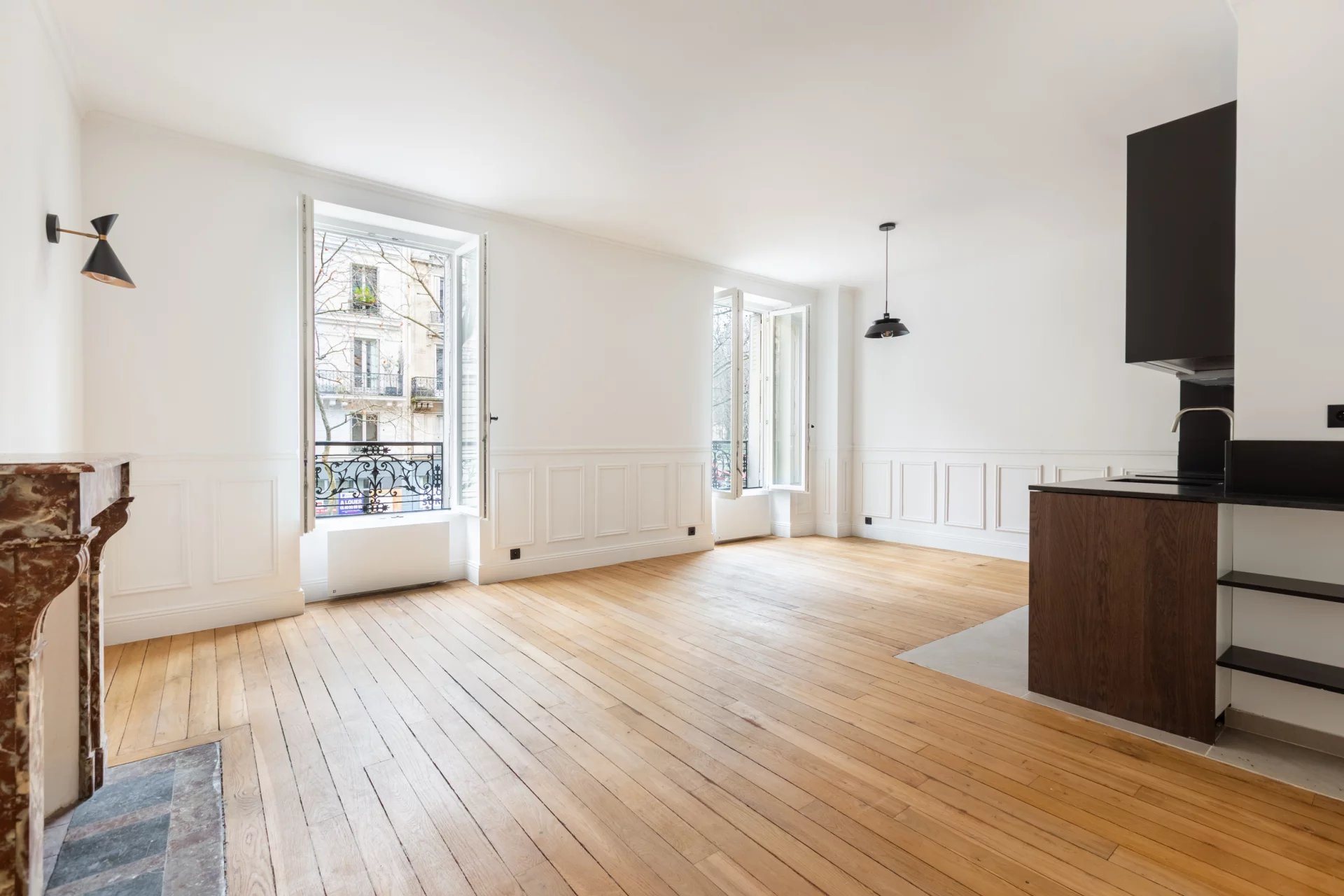 Situé boulevard de la Tour-Maubourg, entre la rue de Grenelle et la rue Saint-Dominique, au 1er étage d’un élégant immeuble haussmannien de 1875, cet appartement de 46.03 m², entièrement refait à neuf, offre un cadre de vie recherché au cœur du 7ᵉ arrondissement. Il se compose d’une entrée desservant un double séjour lumineux avec cuisine ouverte, bénéficiant d’une exposition Est, où le charme de l’ancien est préservé avec de belles moulures et une cheminée. La cuisine, entièrement équipée, s’intègre harmonieusement à l’espace de vie, idéal pour recevoir. La chambre, au calme sur cour, dispose de sa salle de douche attenante, offrant confort et intimité. Des toilettes séparées avec lave-main se trouvent dans l'entrée. L’ensemble est en excellent état, prêt à emménager, et associe le charme de l’ancien à une rénovation contemporaine de qualité. Une cave complète ce bien.