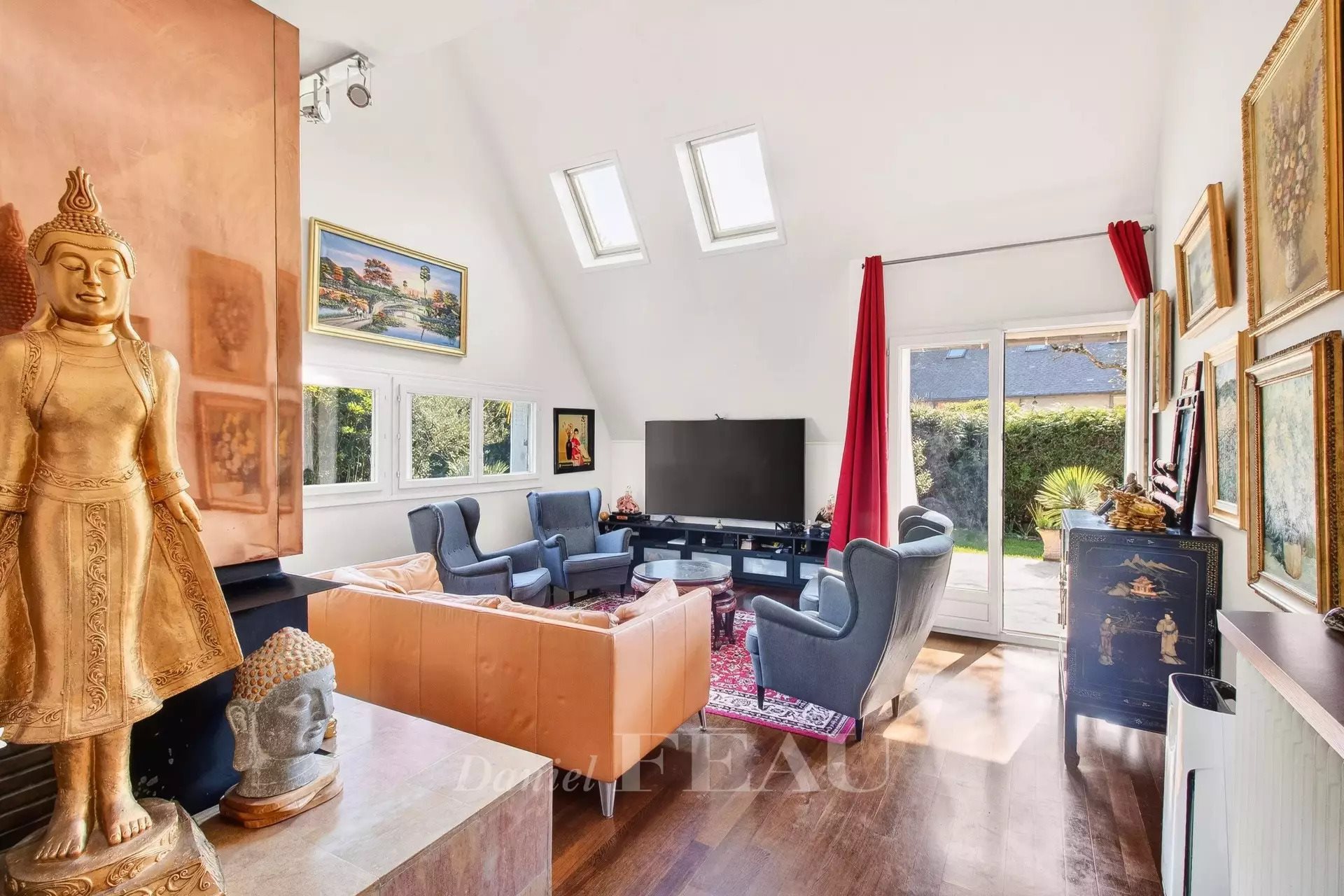 Cette élégante maison de 151 m², construite en 1966 sur un terrain de 550 m², offre un cadre de vie paisible et verdoyant. Idéalement située, la maison profite d’une très bonne desserte, la gare de Versailles Rive Droite étant accessible en bus (15 min) et est à proximité des établissements scolaires Blanche de Castille, Les Châtaigniers et Saint-Jean-Hulst. Le sous-sol offre de nombreux espaces fonctionnels comprenant un atelier, une salle de sport, une buanderie, une salle de télévision/salle de jeux ainsi que des espaces de rangement. Au rez-de-chaussée, un superbe salon cathédrale avec cheminée fonctionnelle, baigné de lumière naturelle, communique avec une salle à manger ouvrant sur un jardin de plain-pied, parfaitement entretenu et paysager. La cuisine attenante, entièrement aménagée et équipée, est séparée par une verrière. Ce niveau accueille également une chambre ainsi qu’une salle de bains complète (avec douche, baignoire, vasque et toilettes) et des toilettes invités. Le premier étage dessert deux spacieuses chambres (dont l'une avec balcon) ainsi qu'une pièce pouvant faire office de bureau. Une salle de douche avec vasque complète cet étage. Au deuxième et dernier étage, deux vastes chambres supplémentaires disposent de rangements et de bureaux intégrés. Une mezzanine, idéale pour un espace de travail ou de lecture, vient parfaire cet ensemble. Deux places de parking extérieures complètent ce bien. Mobilier modulable et sélectionnable selon vos besoins. Le jardin sera entretenu par le propriétaire. DISPONIBLE En JUIN. Honoraires en Loi Alur : 12 € TTC/m². En cas de bail code civil (logement de fonction ou résidence secondaire), honoraires à la charge du preneur de 12 % Ttc du loyer annuel hors charges.