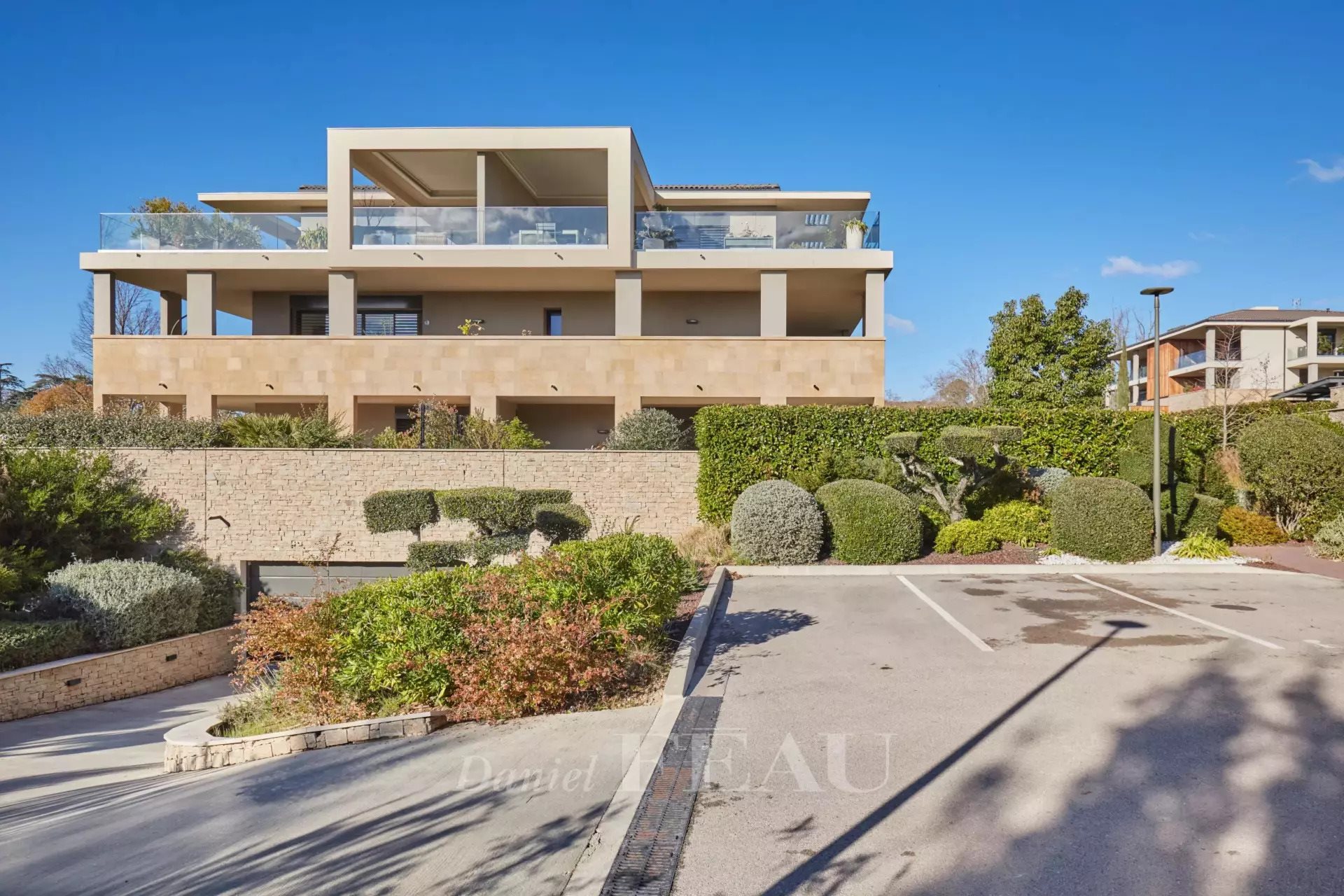Exclusivité Daniel Feau : Au calme, appartement de grand standing, idéalement situé dans le quartier recherché de La Torse, à seulement dix minutes à pied du centre-ville. Une adresse privilégiée, combinant l'accès immédiat aux commerces et aux transports (bus à pied - 150m) avec l'intimité d'une résidence sécurisée et paisible. Ce bien d'exception de 69,92 m2 Loi Carrez, situé en rez-de-jardin, offre une qualité de vie incomparable grâce à ses espaces extérieurs : une superbe terrasse de 61m2 prolongée par un jardin privatif de 40m2 (exposition Sud-Est). L'appartement est défini par la lumière, le calme et la modernité. Le vaste séjour de 31 m2 avec cuisine intégrée s'ouvre sur les extérieurs. Il bénéficie d'une installation domotique moderne (gestion des éclairages, volets, ou climatisation réversible) assurant un confort quotidien optimisé et une maîtrise énergétique de pointe. L'espace nuit comprend une chambre principale de 13m2 et une seconde de 9m2, idéales pour une flexibilité d'usage (bureau, chambre d'amis). Une salle d’eau contemporaine de 4m2 et un toilette indépendant complètent ce niveau de prestation. Le cadre est soigné et la résidence dispose d'un ascenseur aux normes Pmr reliant directement l'appartement à un double box privé en sous-sol. Ce bien unique représente une alliance parfaite entre emplacement premium, vastes extérieurs et confort technologique. Nombre de lots : 26