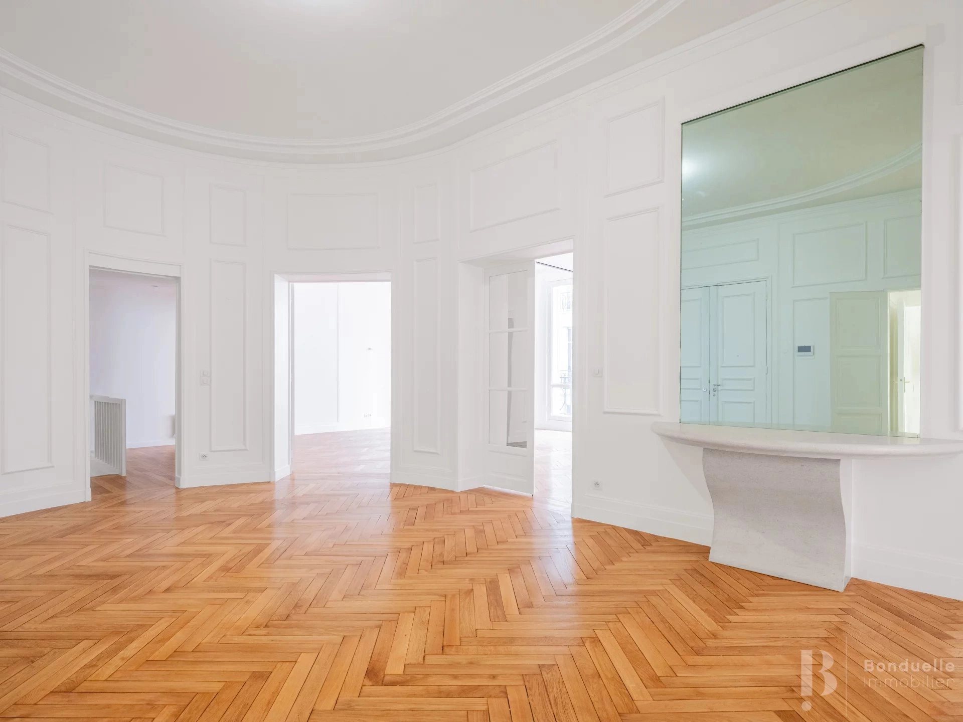 Bonduelle Immobilier vous propose à la location un appartement de prestige de 309.7 m², situé au 2e étage d’un superbe immeuble de standing, avenue de Malakoff. Ce bien rare se distingue par ses volumes spectaculaires, sublimés par une hauteur sous plafond de 3,40 mètres, et une distribution idéale pour une vie familiale ou de réception. L’appartement se compose comme suit : - Un double séjour spacieux et lumineux - Une salle à manger - Une cuisine - Une master bedroom avec rangements et salle de bains complète comprenant douche, baignoire et toilettes Trois chambres supplémentaires, toutes dotées de rangements, dont : - Une chambre avec salle de bains - Deux chambres avec salle de douche - Un dressing indépendant - Toilettes séparées Les volumes généreux, la hauteur sous plafond exceptionnelle et la qualité de l’immeuble confèrent à ce bien un caractère unique et résolument haut de gamme. Une cave complète ce bien. Possibilité bail classique habitation ou Code Civil.