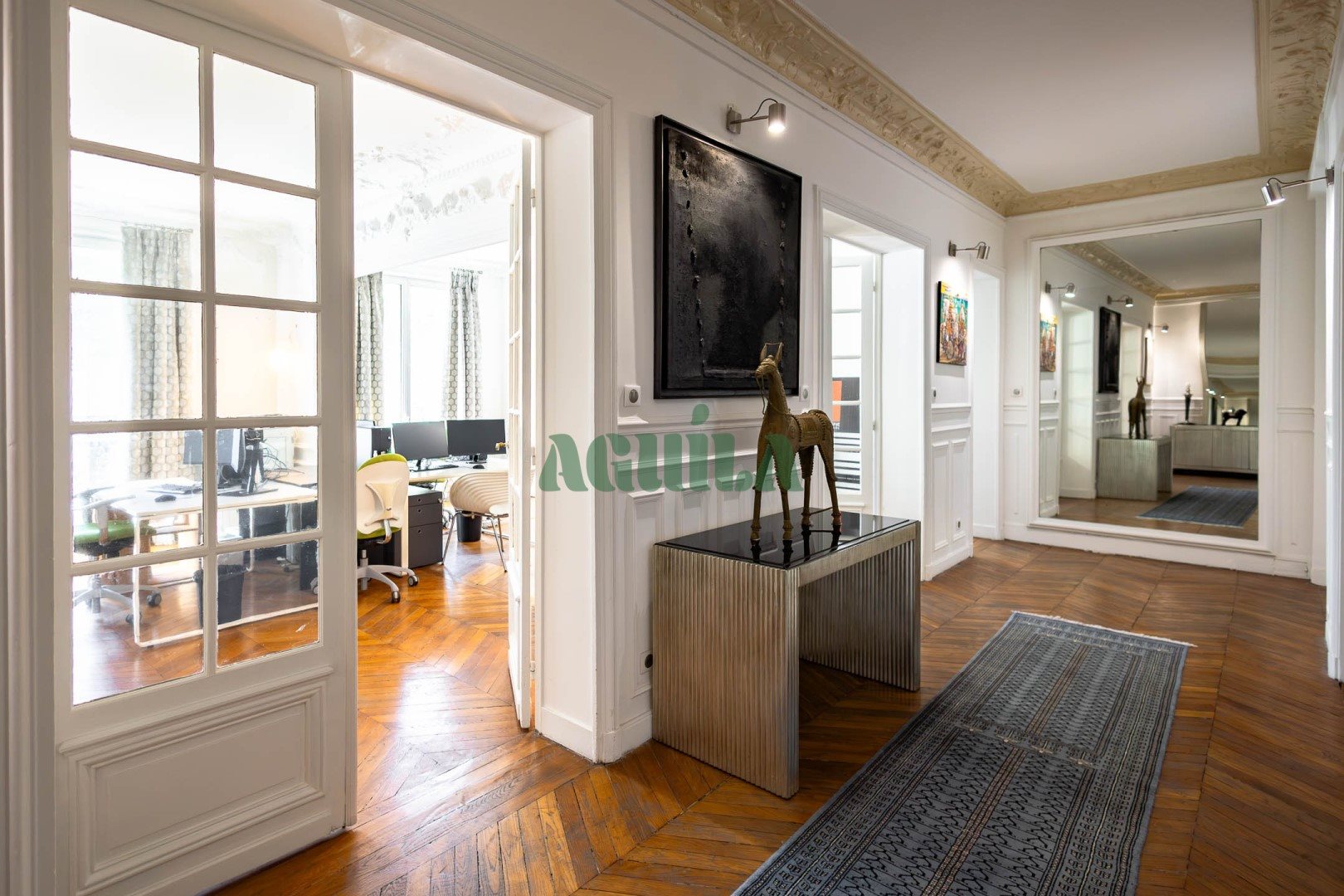 Situé dans le 14ᵉ arrondissement de Paris, au 1ᵉʳ étage d’un immeuble haussmannien de bon standing, cet appartement traversant Est/Ouest, donnant à la fois sur rue et sur le parc arboré de la copropriété, développe une surface de 170 m². Le bien se distingue par une belle hauteur sous plafond, de très beaux volumes et un excellent état général, offrant une alliance réussie entre le charme de l’ancien et le confort contemporain. La distribution comprend : une entrée, un double séjour, une salle à manger, trois chambres, une cuisine indépendante, un dressing, une buanderie, deux salles d’eau ainsi que deux WC. L’appartement bénéficie d’un usage mixte habitation et professionnel, permettant l’exercice d’une profession libérale. Le propriétaire actuel y exploite d’ailleurs son cabinet d’architecte, attestant de la parfaite adéquation des lieux à un usage professionnel de standing. Un bien rare aux volumes généreux, au sein d’un secteur recherché du sud parisien.