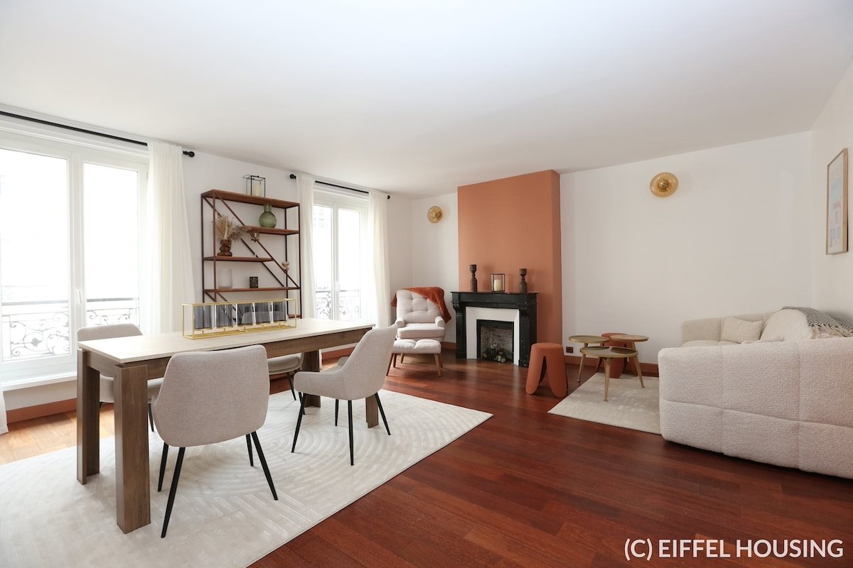 Splendide appartement meublé, refait à neuf, situé rue Sedaine dans le 11ème arrondissement. Nombreux commerces et restaurants du quartier de Bastille à proximité. Proche des stations de métro Breguet Sabin (ligne 5), Voltaire (ligne 9) et Richard Lenoir (ligne 5). L’appartement a bénéficié d’une rénovation complète. Ameublement neuf, contemporain et soigné. Au 3ème étage (sans ascenseur), cet appartement de 55m2 se compose de : d’une entrée (avec rangements) un grand séjour de 28 m2 une cuisine séparée et équipée une grande chambre (lit coffre) avec sa salle de bain ouverte. La chambre est très calme et donne sur cour. un Wc séparé Parquet, belle hauteur sous plafond. Double vitrage. Chauffage et eau chaude individuels électriques. Digicode, interphone.
