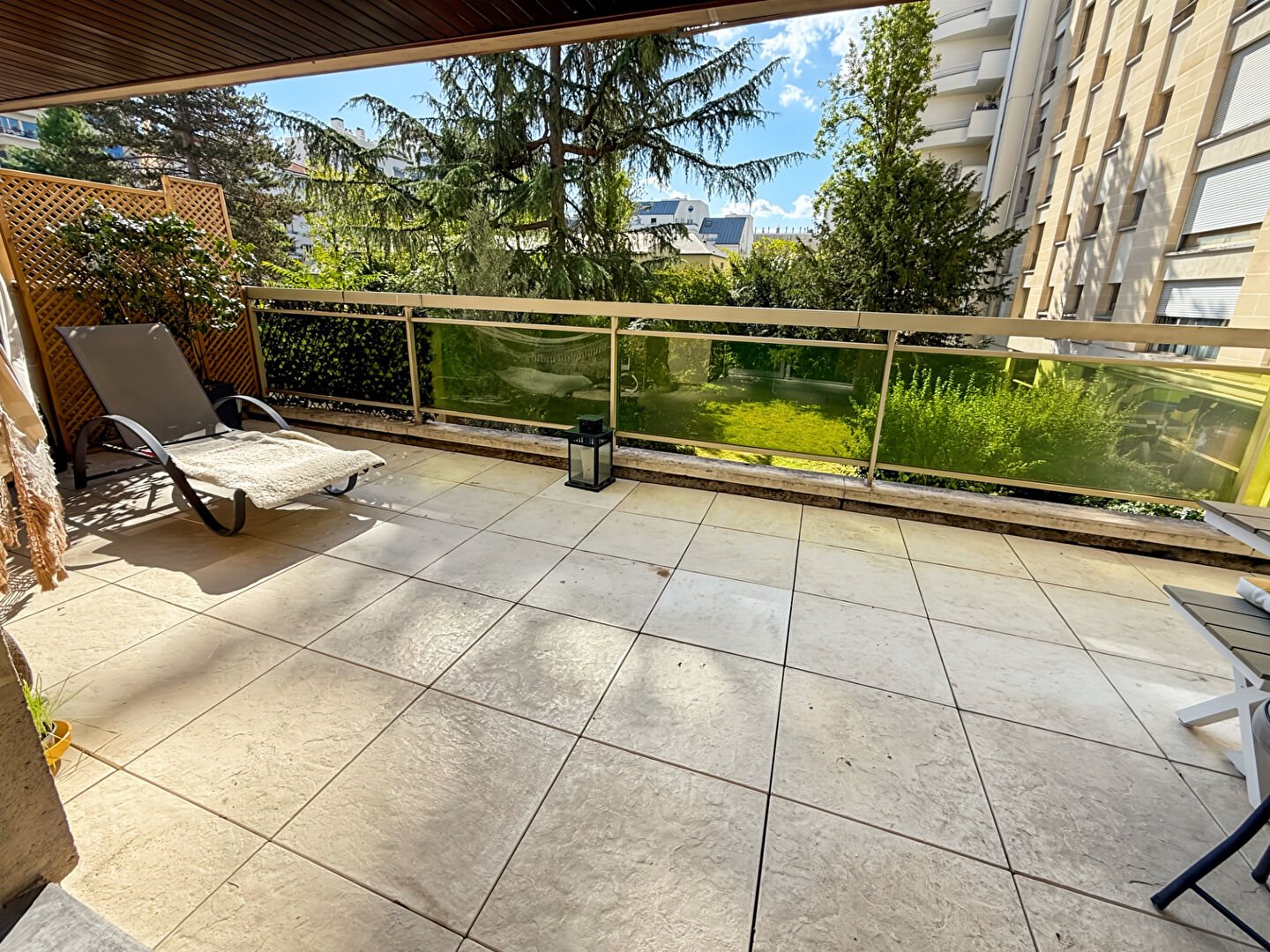 Secteur Gallieni .Exclusivté. A proximité des commerces et transports-Terrasse de 23m2-balcon et Parking. Cet appartement de 3 pièces de 64m2 carrez bénéficie d'un bel espace extérieur de 23m² coté jardin et 10m2 coté rue. Il se compose d'une entrée, d'un séjour lumineux avec une cuisine ouverte, aménagée et équipée, donnant sur une terrasse exposé sud-est, d'une grande chambre avec salle de bain et dressing, puis une 2nde chambre ou séjour coté rue. Plan modulable. L'appartement offre une belle luminosité. Une cave complète ce bien. Parking en Sus