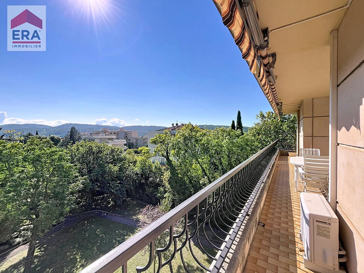 Exclusivite de l'agence du comté d'Aix. Appartement situé à Aix-en-Provence, sur le secteur très recherché de La Torse, offrant une surface habitable de 105m² au quatrième et dernier étage d'une résidence sécurisée et arborée avec ascenseur et garage. Ce bien dispose de 5 pièces, comprenant 3 chambres, un bureau, une cuisine indépendante aménagée et équipée, ainsi qu'une salle d'eau. L'exposition Est et Sud permet un éclairage naturel optimal. L'appartement traversant offre une vue dégagée sur le Montaiguet et les espaces verts. Le chauffage est assuré par le gaz de ville. Ce logement, à rafraîchir, inclut un garage fermé, une cave et une terrasse de 10m² et se trouve à proximité des commerces, écoles et transports en commun. Environnement calme avec espaces verts de la torse à proximité. Appartement de bon standing, il combine confort et commodité, avec un accès facile aux axes autoroutiers. Les honoraires d'agence sont à la charge de l'acquéreur Bien rare à la vente, pour plus d'information : Lionel Lacroix Rsac : 840 555 999.Tel .