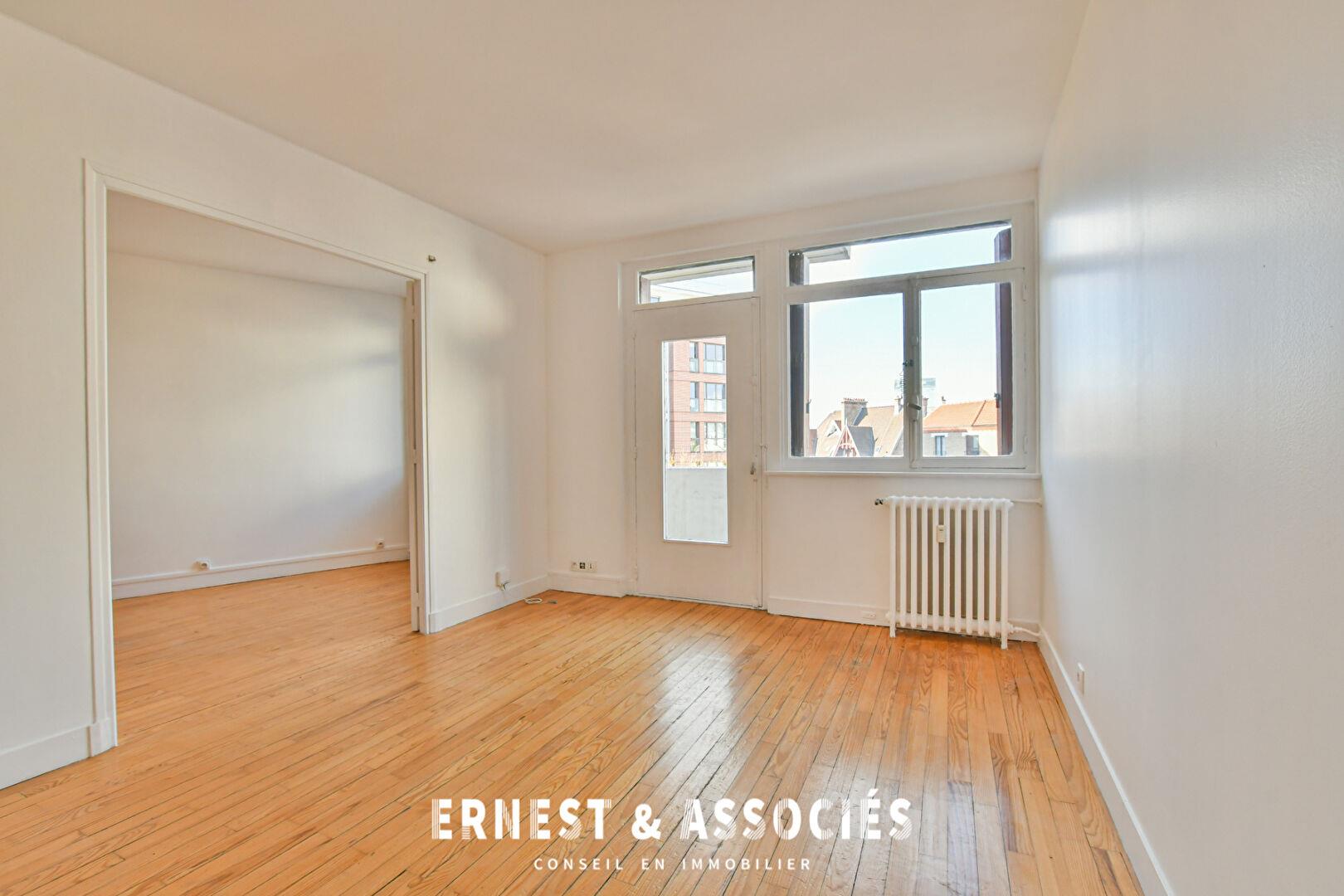 - Marcel Sembat - Au 3ème étage avec ascenseur d'une résidence semi-récente avec gardien, Ernest & Associés vous propose un 3P à rafraîchir offrant une belle distribution en étoile. Ce bien comprend une entrée, un séjour donnant sur un balcon, une cuisine indépendante, deux chambres, une salle de bains et un Wc séparé. Au sous-sol, une cave et un emplacement de parking complètent cet ensemble. Double exposition, très calme et ensoleillé. Proche de tous commerces et transports. Chauffage et eau chaude inclus dans les charges.EXCLUSIVITÉContact Edouard : Agence immobilière détentrice d'une carte T sans détention de fonds Honoraires à la charge du vendeurNos honoraires