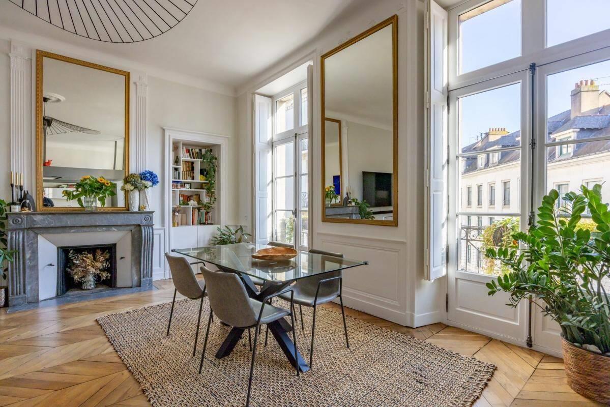 Situé au coeur du quartier prisé de la place Graslin, à Nantes, cet appartement de 105 m² Carrez (113 m² au sol) se trouve au 3e étage (sans ascenseur) d’un immeuble de caractère de la rue Racine. Rénové complètement en 2020, il allie avec douceur le charme ...