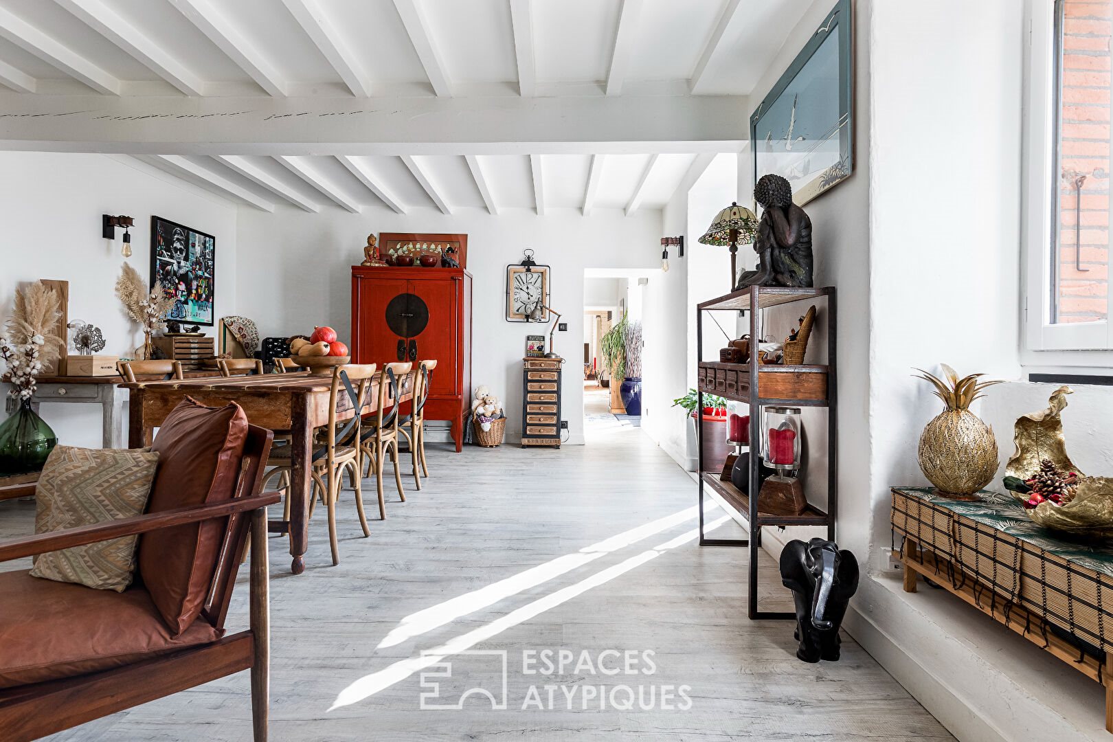 Au détour d’un chemin champêtre, cette ancienne longère du XIXème siècle située près de Puylaurens, s’est réinventée en un lieu de caractère où authenticité et volumes contemporains dialoguent avec justesse. Derrière sa façade de pierre, la grande pièce de vie impressionne par sa hauteur sous plafond, sa rochelle suspendue, ses baies vitrées plein sud qui ouvrent sur le parc, et ses 2 poêles à bois qui diffusent une chaleur douce et enveloppante. La luminosité incroyable inonde chaque recoin de la maison, sublimant les matières et révélant toute la chaleur du lieu. Le regard file vers l’extérieur, happé par la vue dégagée sur la Montagne Noire. Les 240 m² habitables abritent aujourd’hui au rez-de-chaussée une cuisine et son arrière-cuisine, une salle à manger et un salon cathédrale et, à l’étage, le coin nuit une petite suite avec salle d’eau privative, deux chambres et une salle d’eau aux dimensions plus que généreuses, ainsi qu’une mezzanine aux vocations multiples. Chaque espace cultive le charme d’une rénovation soignée où matériaux bruts et touches contemporaines s’équilibrent harmonieusement. À l’extérieur, le parc paysager de près de 6 000 m² invite à la flânerie : massifs fleuris, arbres aux essences variées et une grande piscine au sel composent un cadre paisible, sans aucun vis-à-vis. Une dépendance de 80 m², à aménager, offre de multiples perspectives : atelier d’artiste, gîte, …selon vos envies. Pompe à chaleur air / eau Panneaux solaires Poêles à bois Revel: 15 mn Puylaurens : 8 mn Toulouse : 55 mn (A69 = 30 mn) Commerces, Ecoles, collège : 8 min CLASSE Energie : B / Classe Climat : B Montant moyen estimé des dépenses annuelles d’énergie pour un usage standard, établi à partir des prix de l’énergie de l’année 2021, 2022 et 2023 : entre 2 400 € et 3 260 € Les informations sur les risques auxquels ce bien est exposé sont disponibles sur le site Géorisques :