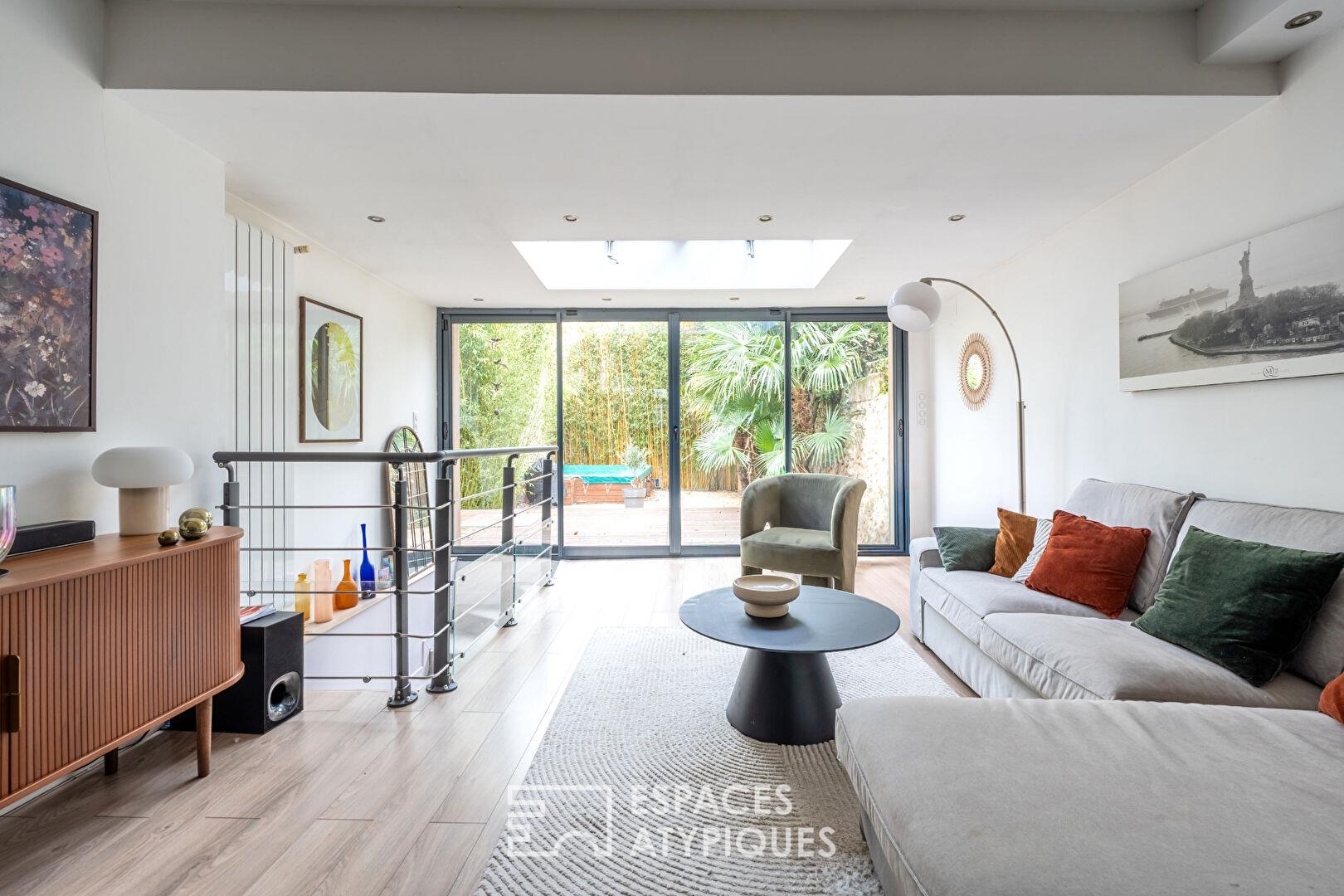 À quelques pas seulement de l'effervescence des Halles de Tours, cet appartement en rez-de-jardin révèle une adresse aussi rare que précieuse. Niché au sein d'une copropriété intimiste de seulement trois lots, il offre une qualité de vie exceptionnelle, sublimée par un jardin paysagé d'environ 80 m² avec bassin, véritable privilège en plein centre-ville. Pensé comme une maison de ville discrète, ce bien séduit dès l'entrée par ses espaces optimisés et son écriture contemporaine. La pièce de vie constitue le coeur de l'appartement : issue de deux extensions architecturales successives, elle déploie une atmosphère lumineuse et apaisante, mise en scène par un puits de lumière et de larges baies vitrées ouvrant généreusement sur la terrasse et le jardin. La relation intérieur/extérieur est fluide, naturelle, invitant à vivre pleinement chaque saison. La cuisine moderne, à la fois fonctionnelle et élégante, s'ouvre harmonieusement sur le salon-séjour, favorisant les moments de partage et de convivialité. Côté nuit, une suite parentale confortable propose un dressing indépendant et une salle de bains complète, équipée d'une baignoire et d'une douche. Une seconde chambre, baignée de lumière, bénéficie elle d'un accès direct au jardin, offrant calme et intimité. En sous-sol, le bien se distingue par des espaces complémentaires rares : deux caves ainsi qu'une pièce voûtée aménagée en salle cinéma, véritable cocon dédié aux loisirs et aux soirées entre amis. Alliance subtile entre emplacement premium, architecture contemporaine et art de vivre extérieur, cet appartement singulier incarne une opportunité confidentielle au coeur de Tours, pour celles et ceux en quête d'un lieu de vie unique, à l'abri des regards, le tout à 200m à pieds des Halles. Possibilité de reprise de baux pour deux garages fermés attenants. Bien soumis au statut de la copropriété : 3 lots Charges Annuelles : Environ 300 euros par an (syndic bénévole) Pas de procédure en cours CLASSE Énergie : C / Classe Climat : C. Estimation du cout annuel en énergie pour un usage standard entre 1042 et 1410 au . Contact: Yann Gasnier : Les honoraires sont à charge vendeur Les informations sur les risques auxquels ce bien est exposé sont disponibles sur le site Géorisques pour les zones concernées : Copropriété de 3 lots - dont 3 lots habitation. (Pas de procédure en cours). Charges annuelles : 300.00 euros.