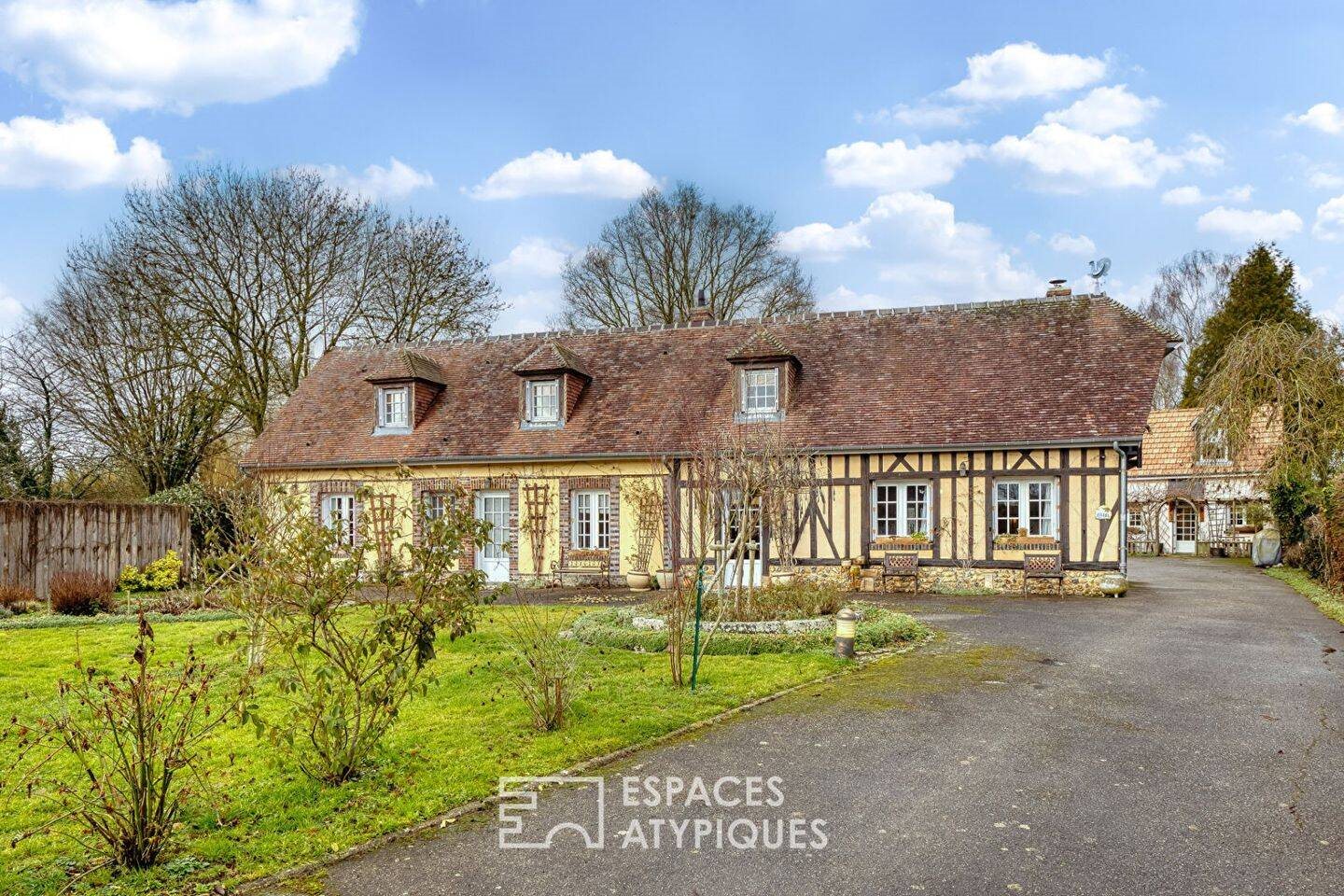 Nichée au coeur de Bois Arnault, à proximité immédiate de Rugles et des axes rejoignant Paris, cette propriété d’exception déploie un art de vivre résolument tourné vers la nature. Sur un parc arboré de plus de 8 500 m², cette longère de 195 m² s’accompagne d’une dépendance rénovée de 55 m², offrant un ensemble immobilier de prestige où le charme de l’ancien dialogue avec une rénovation contemporaine soignée. L’entrée s’effectue par une véranda baignée de lumière, véritable jardin d’hiver invitant à la sérénité. Elle mène à une vaste cuisine dînatoire de 23 m² habillée d’un élégant travertin que l’on retrouve au fil du rez-de-chaussée. Le salon, réchauffé par une cheminée monumentale et des poutres apparentes, profite d’une exposition sud-est idéale. Une suite parentale avec salle de bain haut de gamme complète ce niveau. À l’étage, l’esprit zen domine sous une belle hauteur sous pente, distribuant deux grandes chambres de plus de 20 m², une salle d’eau raffinée et un palier propice au repos. Le jardin, véritable verger généreux où s’épanouissent cerisiers, pommiers, mirabelliers et mûriers, est aujourd’hui le royaume de Ginger, Hollywood et Atakana. Ces trois alpagas, profondément aimés par les propriétaires actuels, font partie intégrante de l’âme du lieu. S’ils circulent aujourd’hui librement jusqu’au seuil de la maison, les propriétaires seraient enchantés de pouvoir les confier à de nouveaux gardiens qui souhaiteraient prolonger cette belle histoire avec eux. Une transmission de coeur est ainsi envisageable pour ceux qui rêvent d’une immersion bucolique totale. La vie extérieure se prolonge sur une terrasse et un patio protégé en lames composite, parfaits pour observer cette joyeuse compagnie. La dépendance, idéale en gîte, dispose d’un salon avec cuisine et, à l’étage, d’une chambre avec salle de bain dédiée à la détente. À deux minutes des écoles et proche de Verneuil pour le train, ce bien incarne l’immobilier atypique par excellence. Une immersion bucolique totale pour un projet de vie singulier. Maison principale CLASSE Energie : D/ Classe Climat : D Montant moyen estimé des dépenses annuelles d’énergie pour un usage standard, indexé sur les années 2021, 2022 et 2023 : entre 4010€ et 5080€. Petite maison CLASSE Energie : F / Classe Climat : F Montant moyen estimé des dépenses annuelles d’énergie pour un usage standard, indexé sur les années 2021, 2022 et 2023 : entre 2200€ et 3030€. Les informations sur les risques auxquels ce bien est exposé sont disponibles sur le site Géorisques :