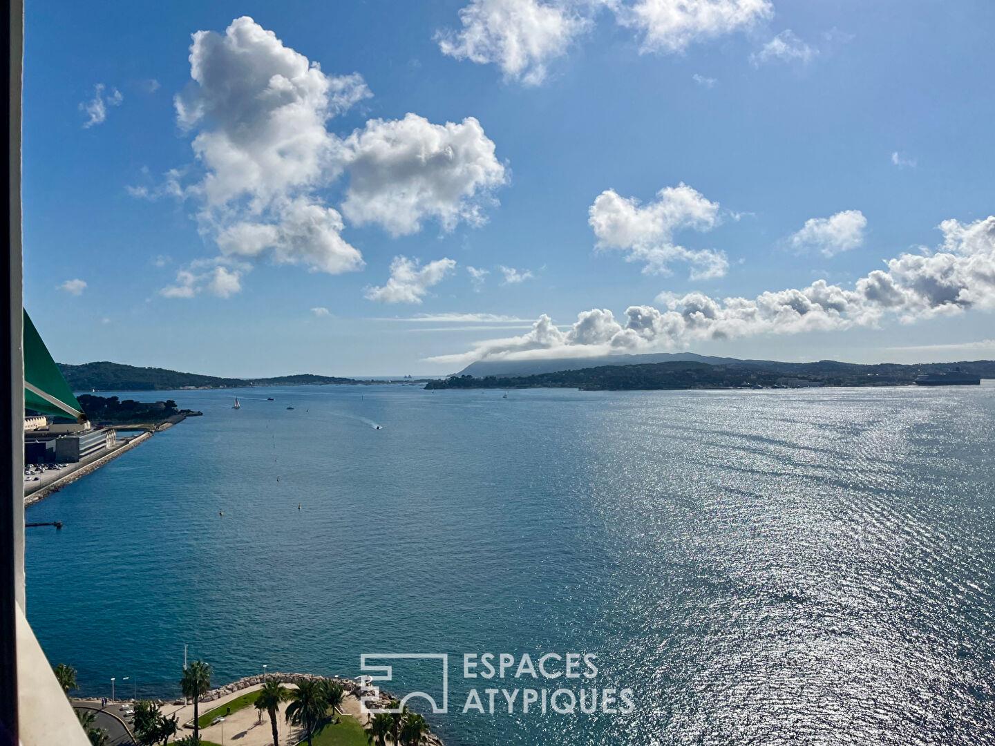 Idéalement situé avenue du Port de Plaisance, entre le Mourillon et le centre-ville de Toulon, cet appartement en étage élevé offre une vue imprenable sur la mer et la rade, un panorama unique qui accompagne chaque instant de vie. L'entrée avec placard mène à un séjour lumineux prolongé par une cuisine attenante, qui peut être partiellement ouverte selon les souhaits (une étude d'ingénierie a déjà été réalisée). Un dégagement distribue de spacieuses chambres, une salle de bains et des toilettes indépendants. Un grenier privatif au dernier étage complète ce bien. L'ensemble est à rénover, laissant place à un projet de transformation sur mesure, où lumière et vue exceptionnelle seront les véritables fils conducteurs. Soumis au régime de la copropriété. Charges annuelles 2452 euros. Pas de procédure en cours. « Classe Energie : D (184kW/m2/an) - Classe Climat : D (36 kg Co2/ m2/an) Montant moyen estimé des dépenses annuelles d'énergie pour un usage standard, établi à partir des prix de l'énergie de l'année 2022 : entre 840 euros et 1220 euros. Les informations sur les risques auxquels ce bien est exposé sont disponibles sur le site Géorisques : Espaces Atypiques Mourillon 51 boulevard Bazeilles 83000 Toulon Copropriété de 60 lots (Pas de procédure en cours). Charges annuelles : 2542 euros.