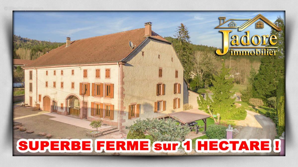 Jadore Immobilier vous présente en Exclusivite cette Superbe Ferme Vosgienne sur plus d'1 Hectare de terrain avec étang, située sur l'axe Saint-Die-Des-Vosges - Nancy, offrant : Rdc: entrée, séjour, buanderie, grande salle de bain avec baignoire et douche, Wc 1, cuisine intégrée, Etage: grande Mezzanine salon, Chambre 1, chambre 2 avec placard, grande chambre 3, grenier aménageable permettant de créer de nombreuses pièces supplémentaires si besoin, Sous-sol: Trois superbes caves voûtées, un caveau et un puits. Divers : grand terrain arboré de plus d'un hectare avec étang, nombreux garages, carport pour camping-car, chaufferie, dépendances permettant de créer 3 logements supplémentaires pour Airbnb éventuellement, 2 boxs à chevaux, grand parking pouvant accueillir une activité commerciale ou artisanale,terrain classé en loisir, Points Forts : bien atypique Rare, alliant la pierre et le bois massif, pour les amoureux de l'authenticité, coup de coeur assuré, Visites : Réf 2800-Vip-Ab