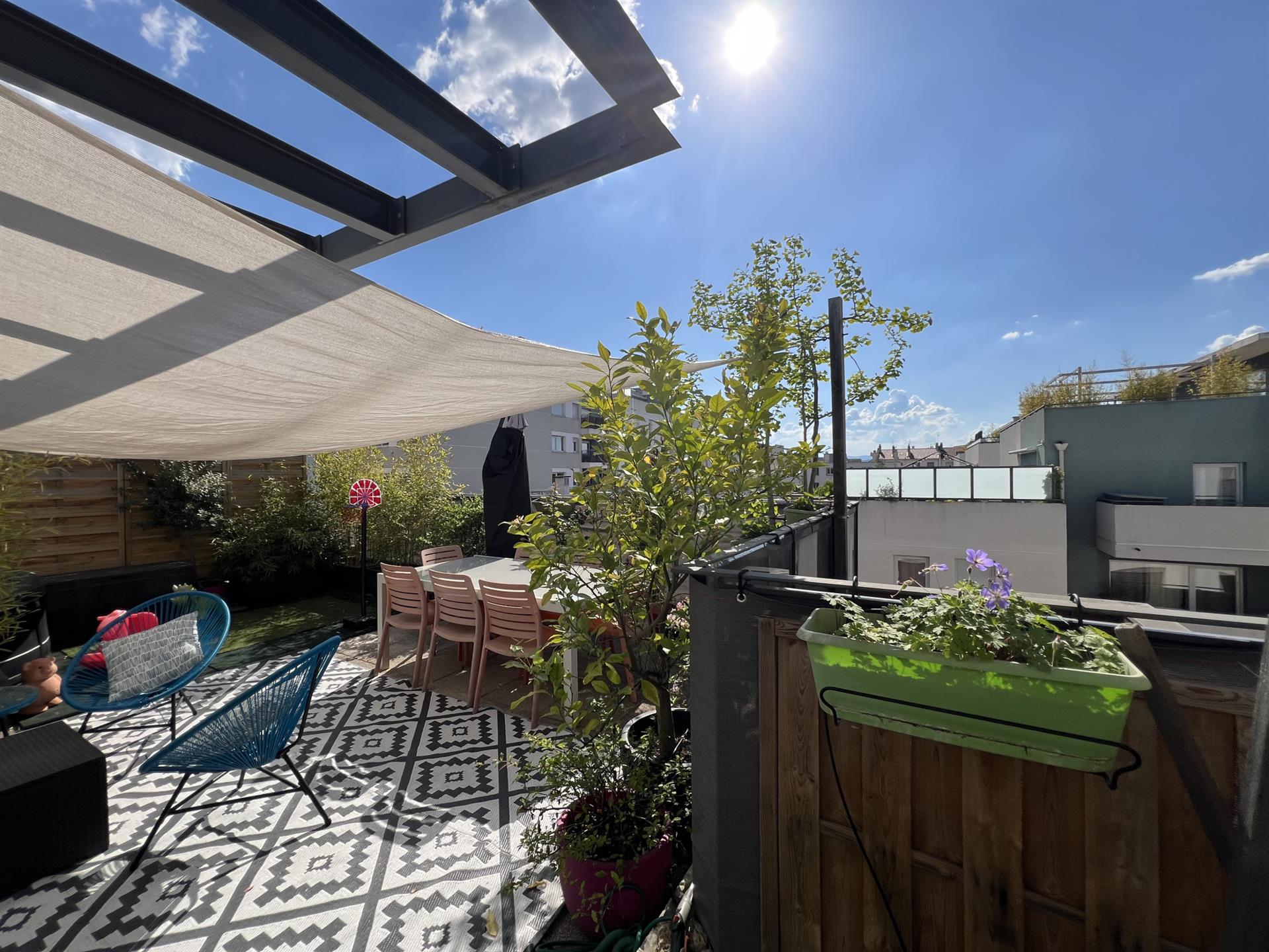 Rare A La Vente, exclusivité à deux pas du quartier de Montchat, coté Villeurbanne, de tout commerce de proximité, des transports en commun (bus et tram ) et des écoles. Maison sur le toit aux prestations haut de gamme. Très bel appartement familial de 130 m2 avec ses110 m2 de terrasses situé au dernier étage d'un immeuble récent. Prestations haut de gamme. A proximité de la toute nouvelle école Niki De Saint Phalle, ou de la prestigieuse école privée 'immaculée conception' venez découvrir cet appartement exceptionnel composé d'une vaste pièce de vie en triple exposition ouverte sur les terrasses dont une avec sa pergola bioclimatique, 4 grands chambres dont une suite parentale avec salle de bains, une 2ème salle de bains, un espace de télétravail, 2 Wc, une buanderie, des rangements et un garage en sous sol. Pour votre confort, chaque pièce est équipée d'une climatisation réversible.Un spa vous attend sur la terrasse. La pergola bioclimatique est équipée de volets motorisés. Arosage automatique sur les terrasses. Pour parfaire votre confort, un garage en sous sol est inclus dans ce prix. Garage à vélo dans la résidence. Etiquette énergétique C. Estimation des couts annuels d'énergie du logement: entre 1600 et 2230 € par an.. Charges: 3996 €/an. 88 lots de copropriété. Pas de procédure en cours. Contact Emmanuelle Lyonnet - Rsac