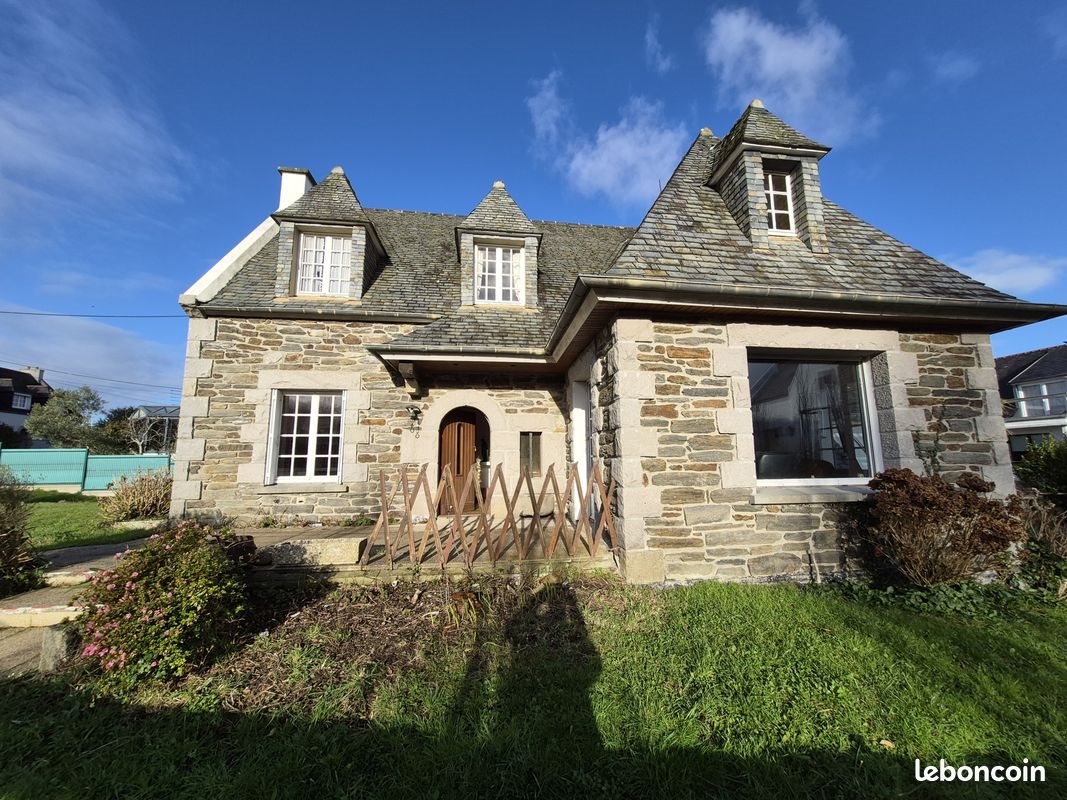 Bretagne, Baie de Morlaix, Carantec vente belle maison centre ville habillée de pierres de tailles et couverte d'ardoises de pays, proche commerces et plages, construite sur sous-sol semi enterré avec garage. Entrée en rez de jardin, cuisine, salon-séjour avec cheminée, chambre avec salle d'eau privative, wc. A l'étage : mezzannine , 3 chambres, sall de bains avec wc. Attenant un atelier et un autre garage. Endroit privilégié et calme, vue dégagée.