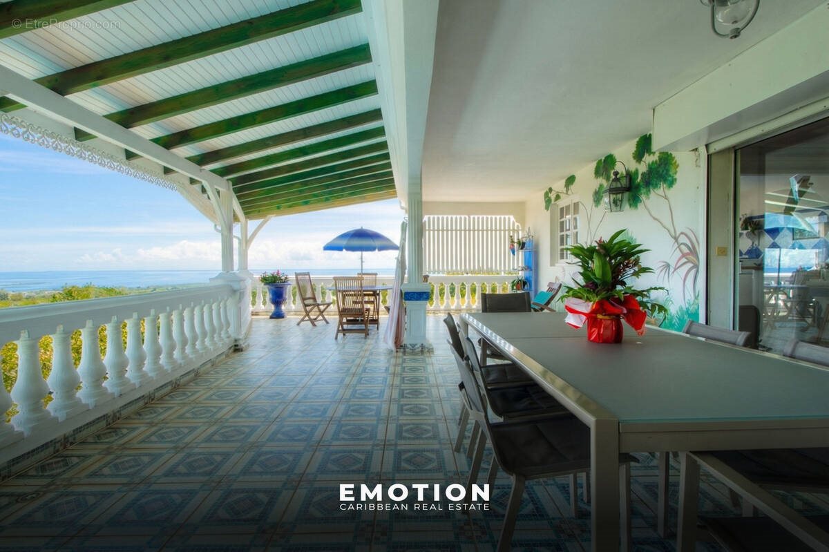 Villa 4 Ch + appartement 2 Ch - Vue mer exceptionnelle sur les hauteurs de Sainte-Rose Exclusivite Le cabinet Emotion vous propose un nouveau bien à la vente d'une superficie habitable de 280m2 niché sur les hauteurs de Sainte Rose dans le secteur très recherché de Sofaïa offrant une vue mer exceptionnelle sur 180 o. La villa de 3 étages en béton se compose au rez de chaussée : un séjour et salle à manger de 80m2 au sol en marbre, une cuisine ouverte aménagée et équipée de 16 m2, 1 master suite de 37m2 avec salle de bain complête, double vasque et dressing , 1 chambre de 14 m2 avec sa salle de bain de 12 m2 avec double vasque , 1 cellier de 9 m2 et une terrasse couverte de 75 m2 La villa se compose à l'étage: une mezzanine de 25m2 dessert 2 chambres de 13 m2 chacune, une salle de bain complète, 3 terrasses de 13 m2 environ chacune. Cet espace peut être rendu indépendant avec un accès direct depuis l'extérieur. La villa se compose au niveau inférieur : un appartement de 65 m2 comprenant 2 chambres, 1 salle de douche , 1 salon et cuisine amménagée , 1 terrasse couverte de 75 m2 permet d'accueillir vos proches ou de bénéficier d'un revenu locatif. Cet appartement est vendu meublé. La vue est incroyable, depuis les 5 terrasses globalisant près de 200 m2. Ces espaces extérieurs sont de véritables espaces de vie complémentaires. La propriété bénéficie également d'un terrain de 825 m2 constructible accessible depuis le fond de jardin . C'est une villa avec beaucoup de volume et de potentiel, avec des atouts locatifs existants et à créer. En annexe : - Garage de 70 m2 et parking extérieur complémentaire - Piscine au sel - Carbet - Terrain constructible - 2 citernes d'eau de 5000 l - Dpe A - Taxe foncière 3 885 € - Pprn : Blanc - Prix 695 000 euros Hai, honoraires à la charge du vendeur Pour plus d'informations, contactez-moi par téléphone ou Whatsapp Florence Caruso +33 6