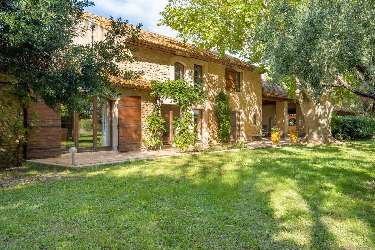 Dans la magnifique région du Comtat Venaissin, au cœur de la Provence, découvrez ce mas en pierre de caractère d’environ 206 m2, niché dans un écrin de verdure de 18 000 m2, à l’abri des regards et bercé par le calme de la campagne environnante. Ce mas soigneusement entretenu séduit par son authenticité préservée : plafonds à la provençale, cheminée en pierre, matériaux nobles… l’ensemble est sublimé par des touches contemporaines comme de larges baies vitrées, qui baignent les pièces de lumière et offrent une belle ouverture sur la nature environnante. Le rez-de-chaussée propose de beaux volumes de vie : hall d’entrée avec toilettes invités cuisine indépendante avec cheminée salle à manger conviviale pour recevoir famille et amis grand salon lumineux avec cheminée en pierre, idéal pour les soirées d’hiver. À l’étage, l’espace nuit offre quatre chambres spacieuses, dont trois avec placards, une salle de bains, une salle d’eau et un toilette indépendant. A l’extérieur, le jardin paysagé offre un cadre naturel, pensé pour un entretien facile. Il est copieusement planté d’arbres fruitiers, platanes, saules pleureurs…, l’espace piscine offre un superbe bassin de 10mx6 m, un pool-house entièrement équipé (frigo, évier, lave-vaisselle, plaque chauffante, barbecue) ainsi qu’une grande terrasse couverte pour les soirées d’été. Une remise rénovée comprenant un atelier, un grenier et un garage de 40 m2, un deuxième garage de 35 m2 attenant au mas avec mezzanine et portail automatique complètent l’ensemble. Les équipements comprennent : chauffage au sol par géothermie, chauffe-eau thermodynamique, système d’alarme, forage, portail électrique… Située à quelques minutes des commodités et des grands axes (autoroute), cette propriété rare bénéficie d’un emplacement privilégié, à proximité des Dentelles de Montmirail, au cœur de l’une des plus belles régions de Provence. Les informations sur les risques auxquels ce bien est exposé sont disponibles sur le site Géorisques :