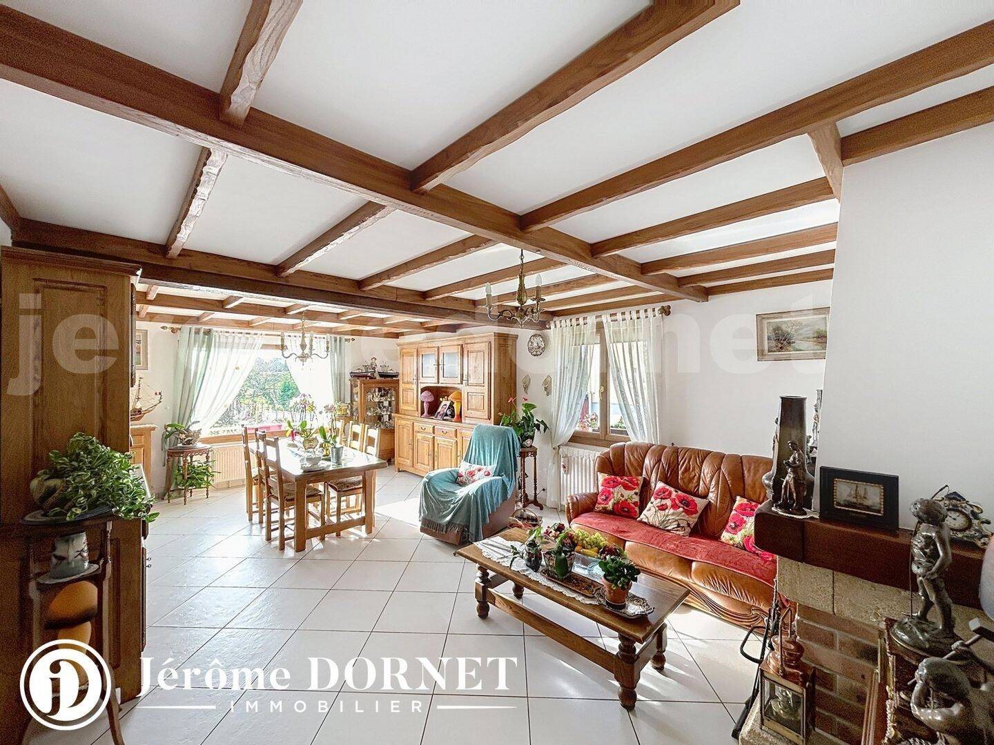 A Grandvilliers Pavillon Sur Sous Sol TOTAL Offrant entrée, cuisine aménagée et équipée, séjour double avec cheminée, veranda, trois chambres, salle de bains + douche, wc. A l'étage grand palier desservant chambre et grenier. Le tout assis sur ...