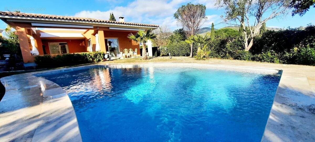 Mandelieu La Napoule, proximité baie de Cannes Dans un Domaine fermé et sécurisé. Coup de Coeur Assuré ! Magnifique Villa de 148 m² sur un Terrain de 1 235 m² avec Piscine. Elle se compose : d'un hall d'entrée, séjour-salon de 50 m² env. Avec cheminée, cuisine équipée donnant sur une grande Terrasse de 50 m², 2 Chambres avec placards, 1 salle de douche, 1 Chambre de Maître avec dressing. Beau Garage de 30 m². Au calme absolu, vue dégagée et Aperçu Mer. A proximité des Commerces, des ports, des Golfs et à 10 mn de Cannes La Croisette. Aéroport de Nice à 20 ' Les informations sur les risques auxquels ce bien est exposé sont disponibles sur le site Géorisques :